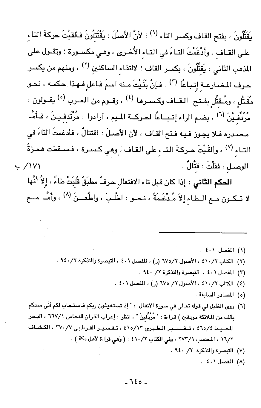 (¬2) الكتاب 2/ 410، الأصول 2/ 675 (ر)، المفصل 401، التبصرة والتذكرة 2/ 940.