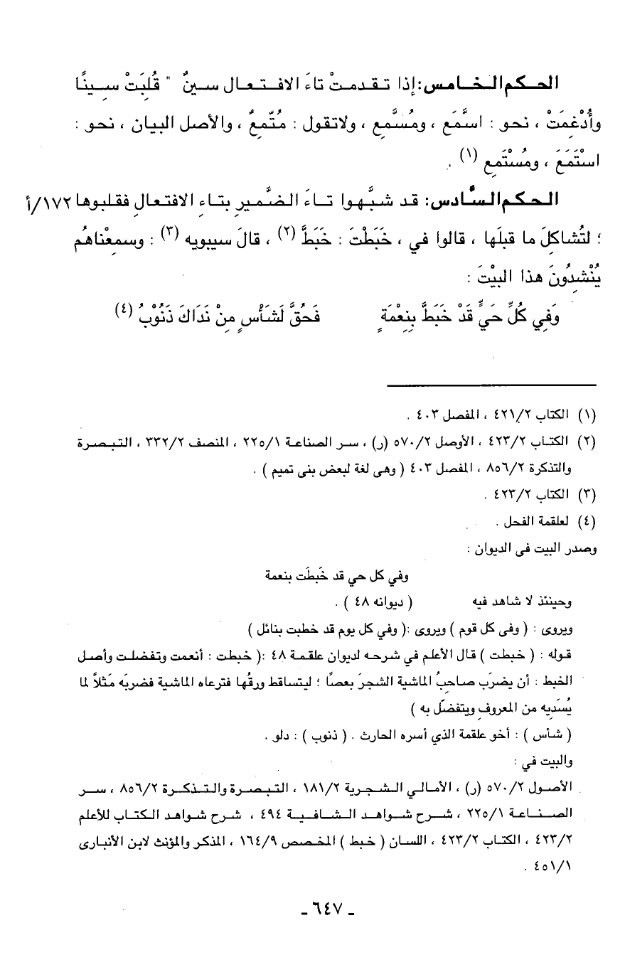 (¬2) الكتاب 2/ 423، الأوصل 2/ 570 (ر)، سر الصناعة 1/ 225، المنصف 2/ 332، التبصرة والتذكرة 2/ 856، المفصل 403 (وهى لغة لبعض بنى تميم).