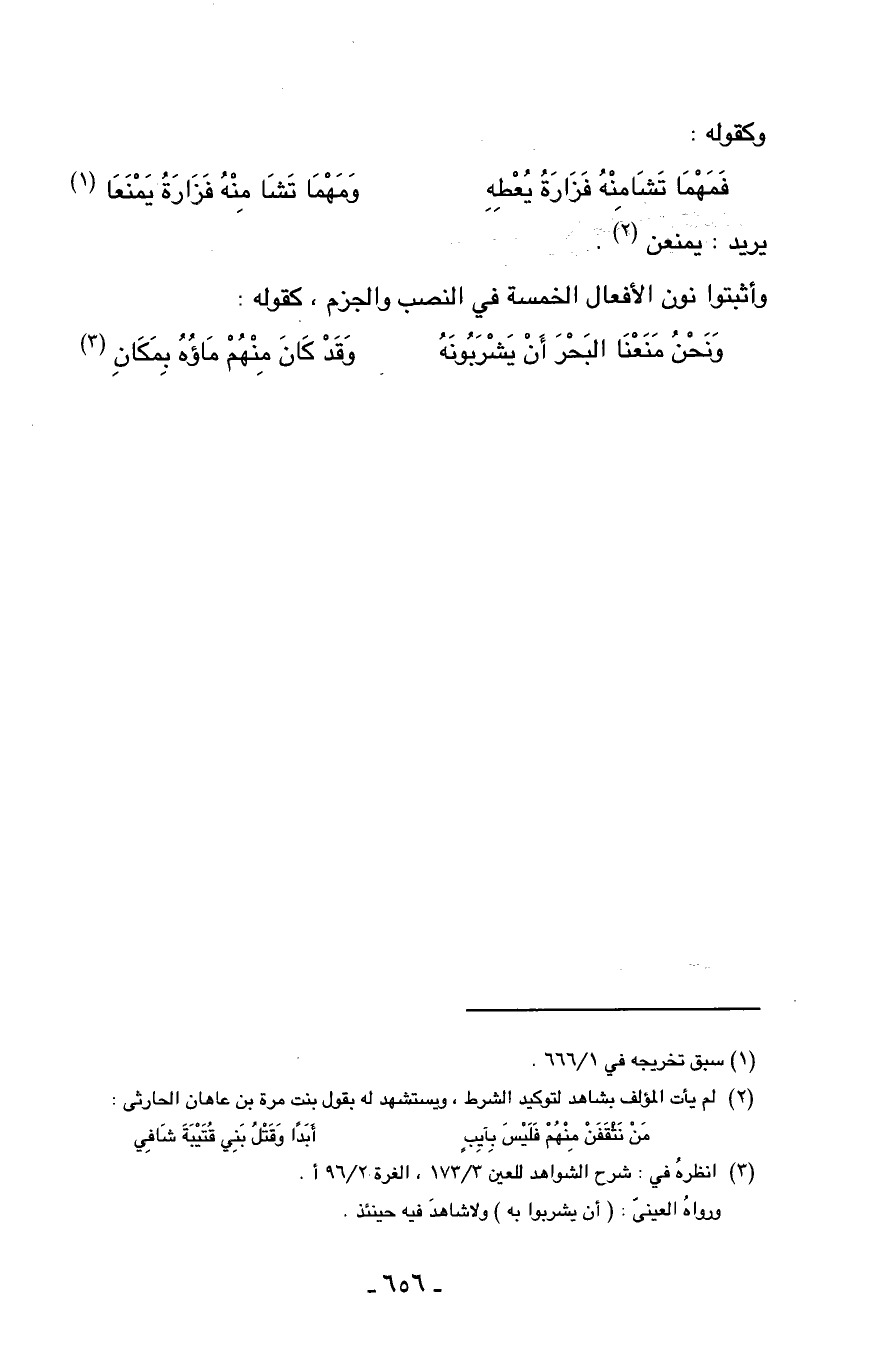 (¬2) لم يأت المؤلف بشاهد لتوكيد الشرط، ويستشهد له بقول بنت مرة بن عاهان الحارثى: