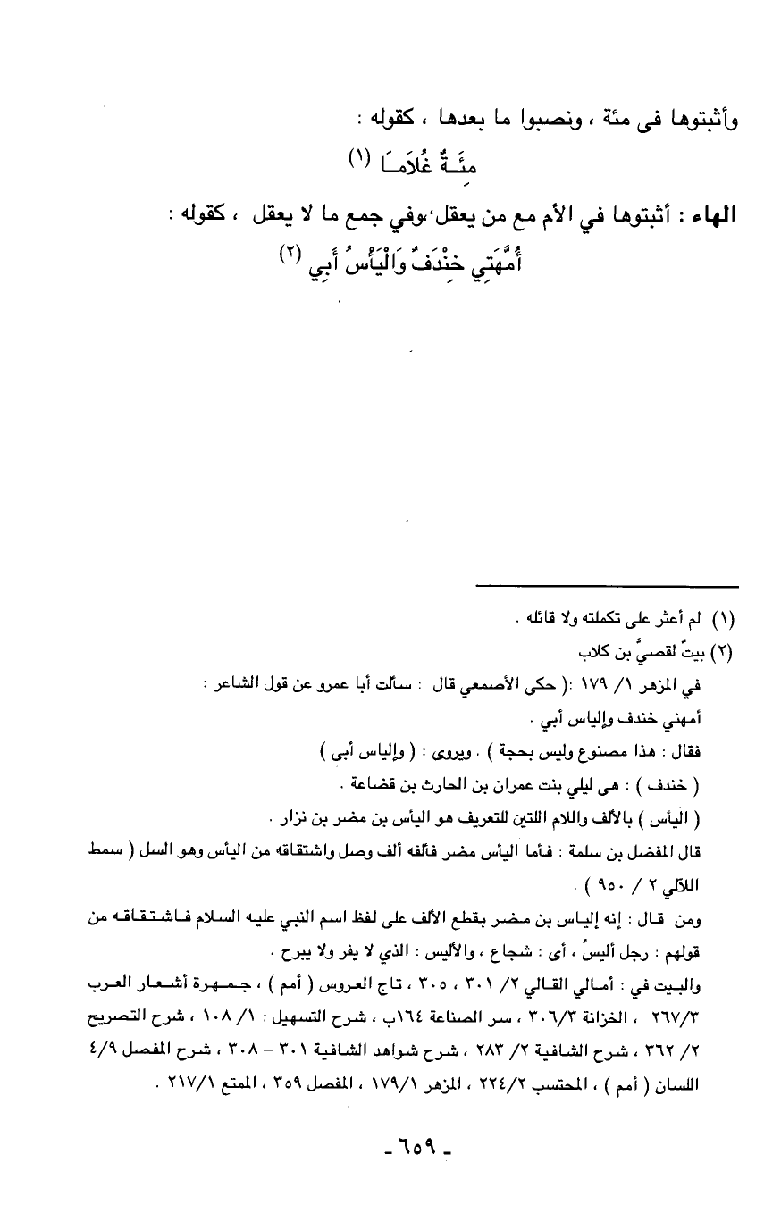 الهاء: أثبتوها في الأم مع من يعقل، وفي جمع ما لا يعقل، كقوله: