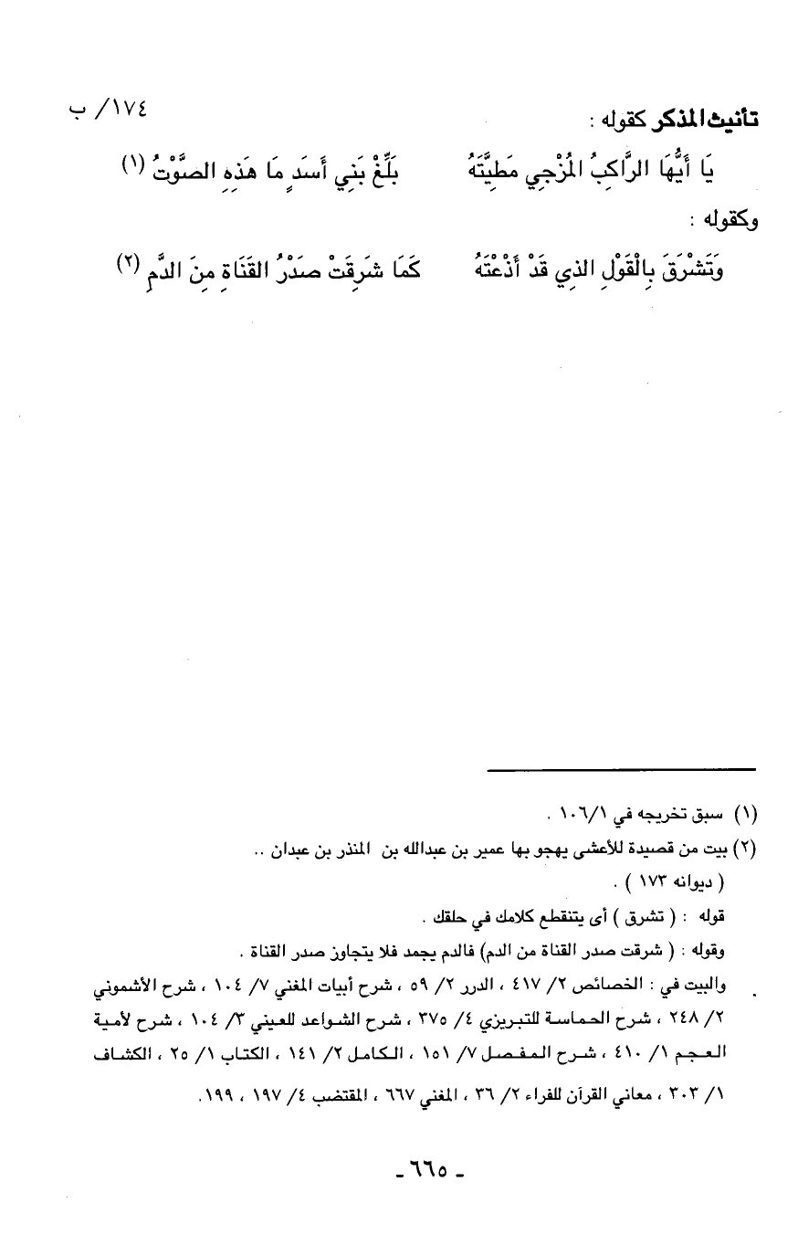 والبيت في: الخصائص 2/ 417، الدرر 2/ 59، شرح أبيات المغني 7/ 104، شرح الأشموني 2/ 248، شرح الحماسة للتبريزي 4/ 375، شرح الشواعد للعيني 3/ 104، شرح لأمية العجم 1/ 410، شرح المفصل 7/ 151، الكامل 2/ 141، الكتاب 1/ 25، الكشاف 1/ 303، معاني القرآن للفراء 2/ 36، المغني 667، المقتضب 4/ 197، 199.