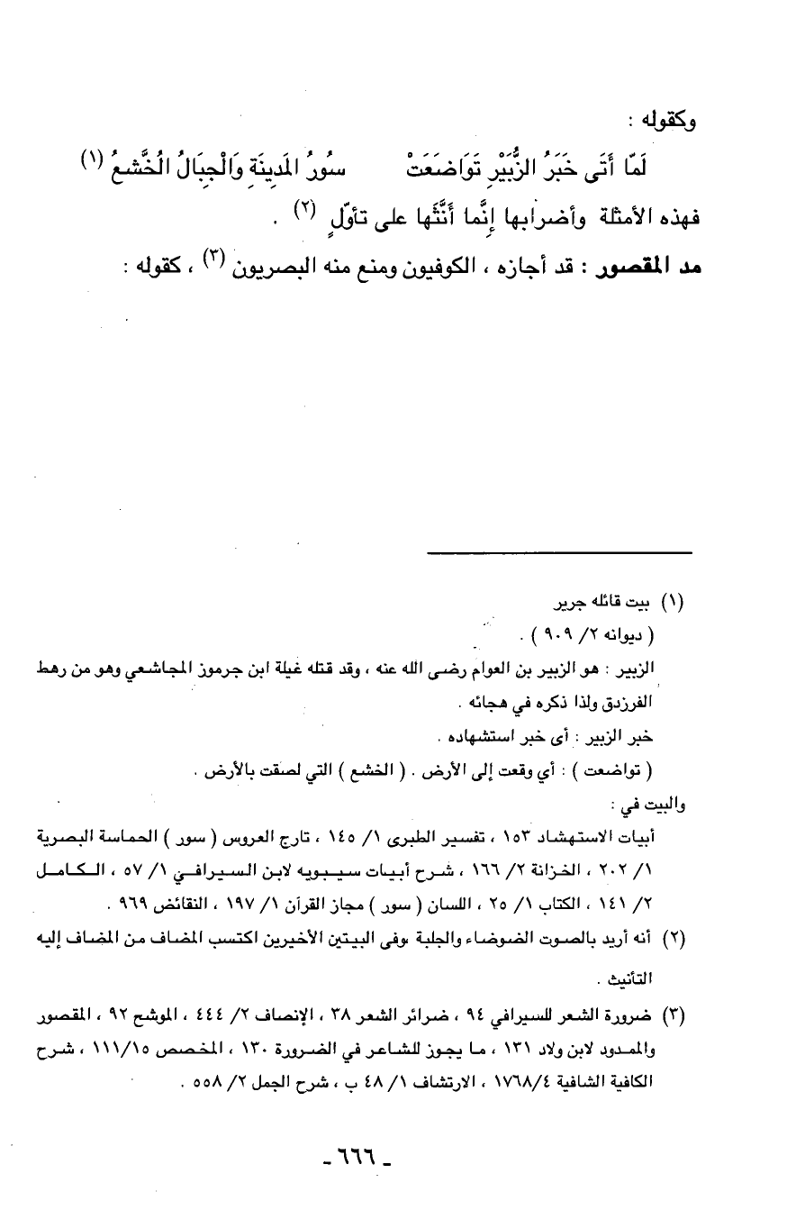 (¬3) ضرورة الشعر للسيرافي 94، ضرائر الشعر 38، الإنصاف 2/ 444، الموشح 92، المقصور والممدود لابن ولاد 131، ما يجوز للشاعر في الضرورة 130، المخصص 15/ 111، شرح الكافية الشافية 4/ 1768، الارتشاف 1/ 48 ب، شرح الجمل 2/ 558.
