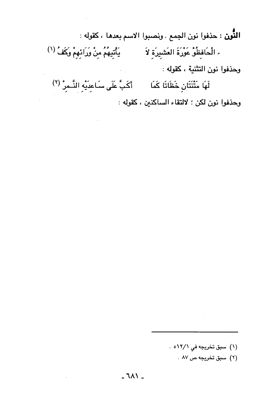 النّون: حذفوا نون الجمع. ونصبوا الاسم بعدها، كقوله:
