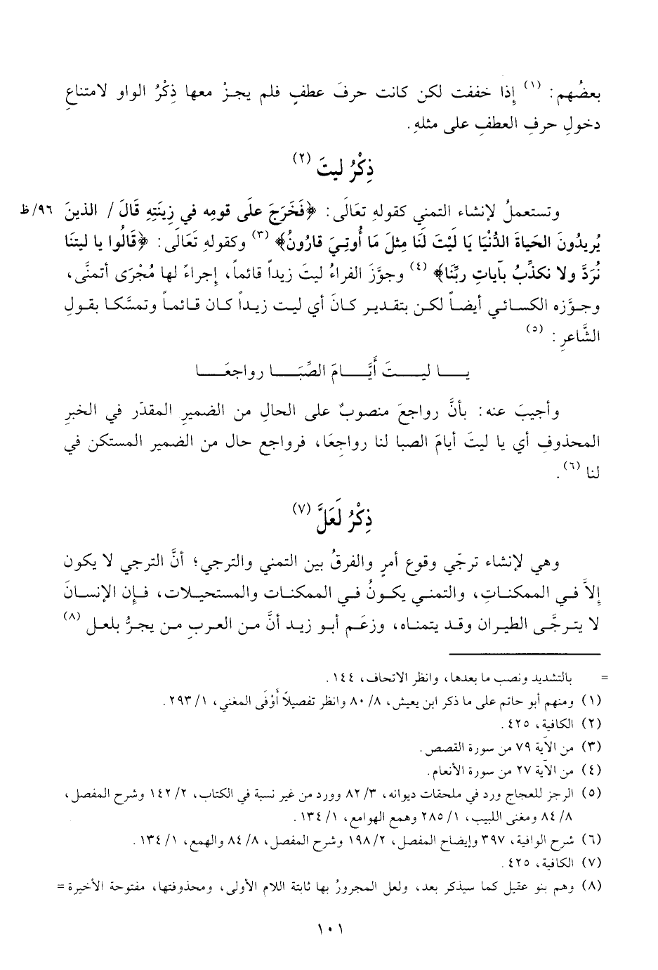 (¬6) شرح الوافية، 397 وإيضاح المفصل، 2/ 198 وشرح المفصل، 8/ 84 والهمع، 1/ 134.