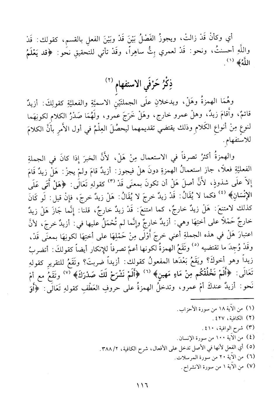 (¬5) أي الفعل لأنها في الأصل تدخل على الأفعال، شرح الكافية، 2/ 388.