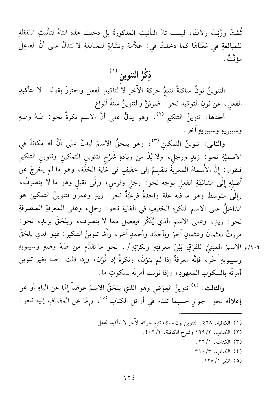 (¬1) الكافية، 428: التنوين نون ساكنة تتبع حركة الآخر لا لتأكيد الفعل.