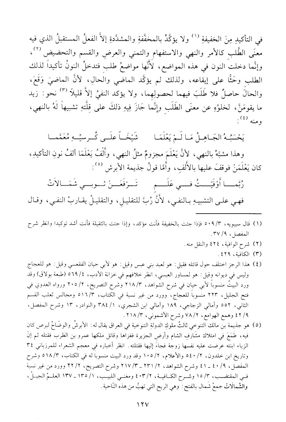(¬1) قال سيبويه، 3/ 509 فإذا جئت بالخفيفة فأنت مؤكد، وإذا جئت بالثقيلة فأنت أشد توكيدا وانظر شرح المفصل، 9/ 37.