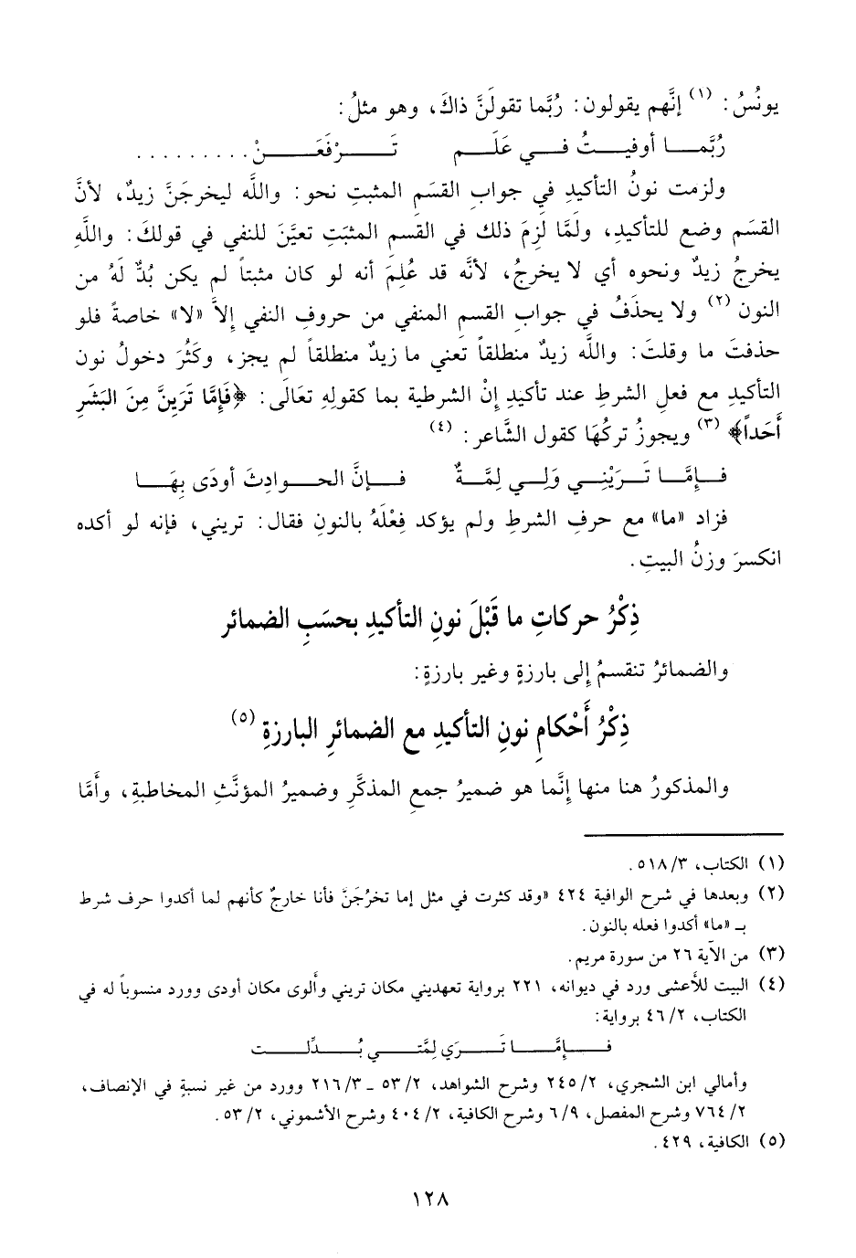 (¬2) وبعدها في شرح الوافية 424 «وقد كثرت في مثل إما تخرجن فأنا خارج كأنّهم لما أكدوا حرف شرط ب «ما» أكدوا فعله بالنون.