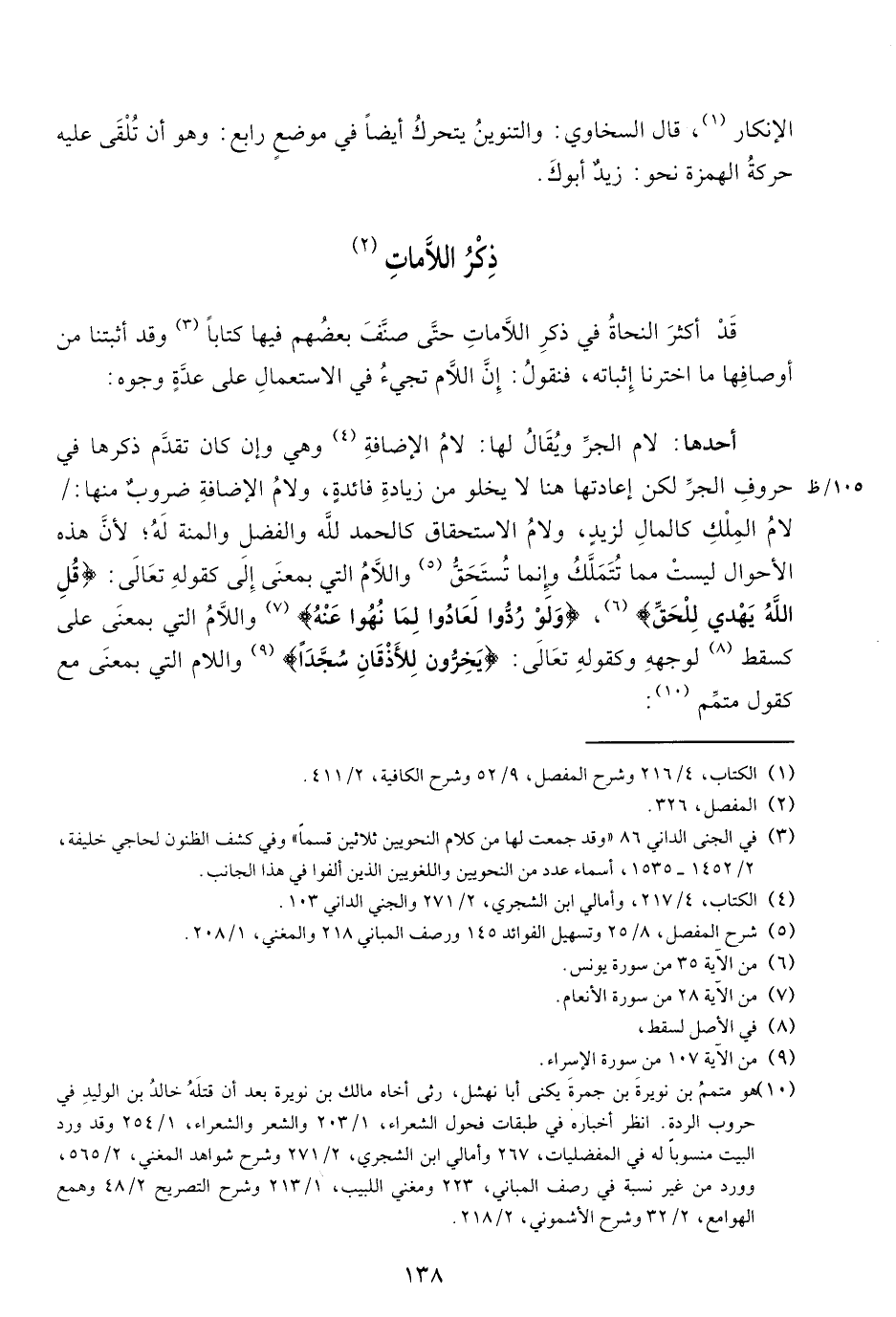 (¬3) في الجنى الداني 86 «وقد جمعت لها من كلام النحويين ثلاثين قسما» وفي كشف الظنون لحاجي خليفة، 2/ 1452 - 1535، أسماء عدد من النحويين واللغويين الذين ألفوا في هذا الجانب.