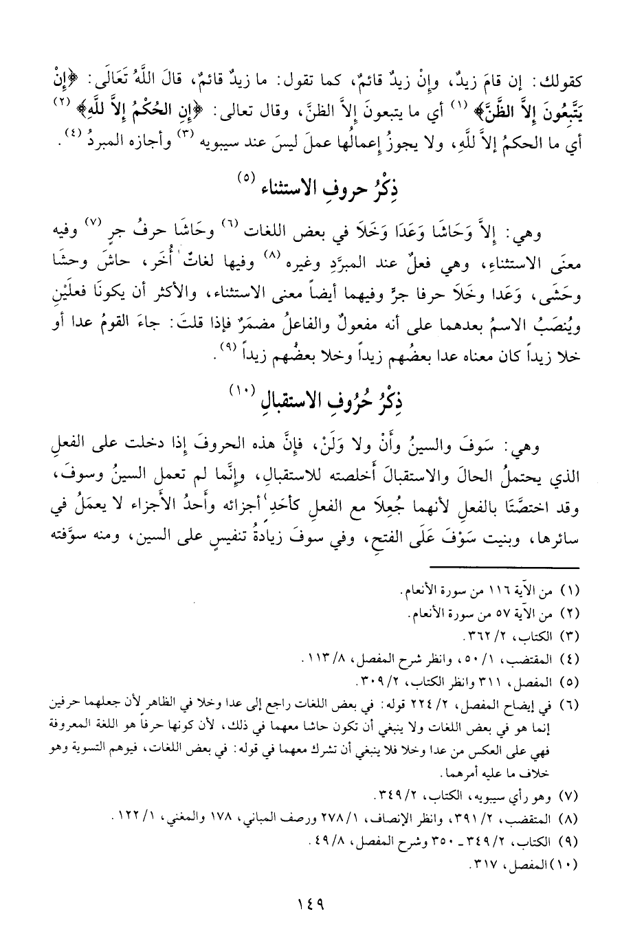 (¬9) الكتاب، 2/ 349 - 350 وشرح المفصل، 8/ 49.