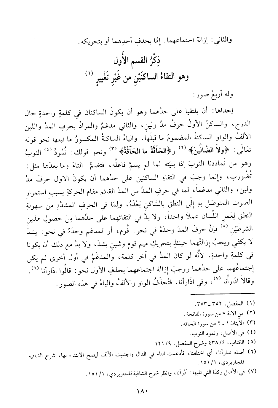 ذكر القسم الأول وهو التقاء الساكنين من غير تغيير (¬1)