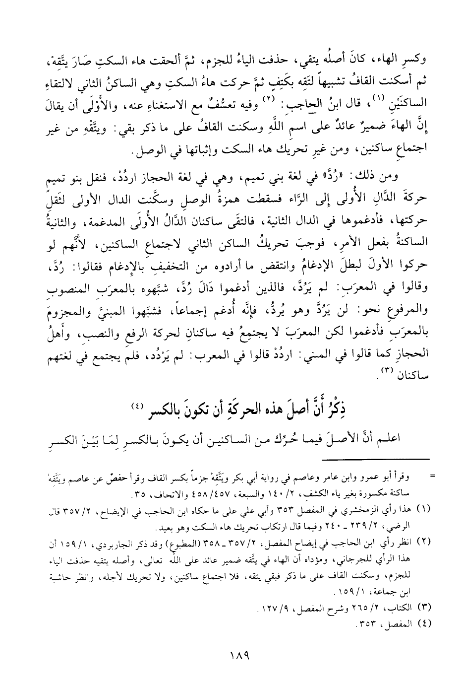 ذكر أنّ أصل هذه الحركة أن تكون بالكسر (¬4)