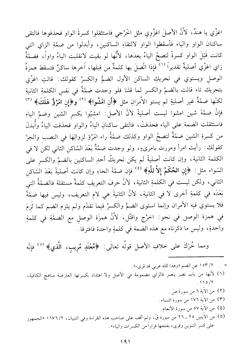 - 2/ 153 عن الضم «وهذا كله عربي قد قرئ».