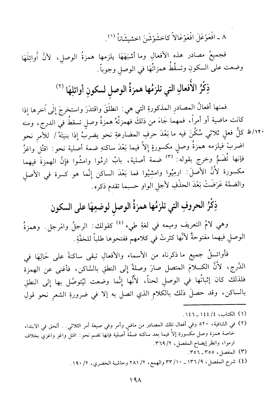 (¬4) شرح المفصل، 9/ 136 - 10/ 33 والهمع، 2/ 281 وحاشية الخضري، 2/ 190.