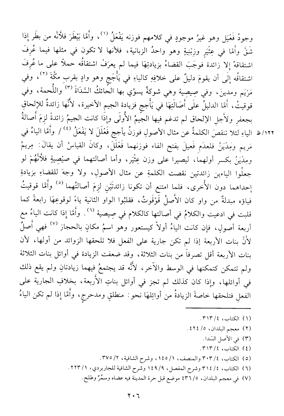 (¬6) الكتاب، 4/ 314 وشرح المفصل، 9/ 149 وشرح الشافية للجاربردي، 1/ 223.
