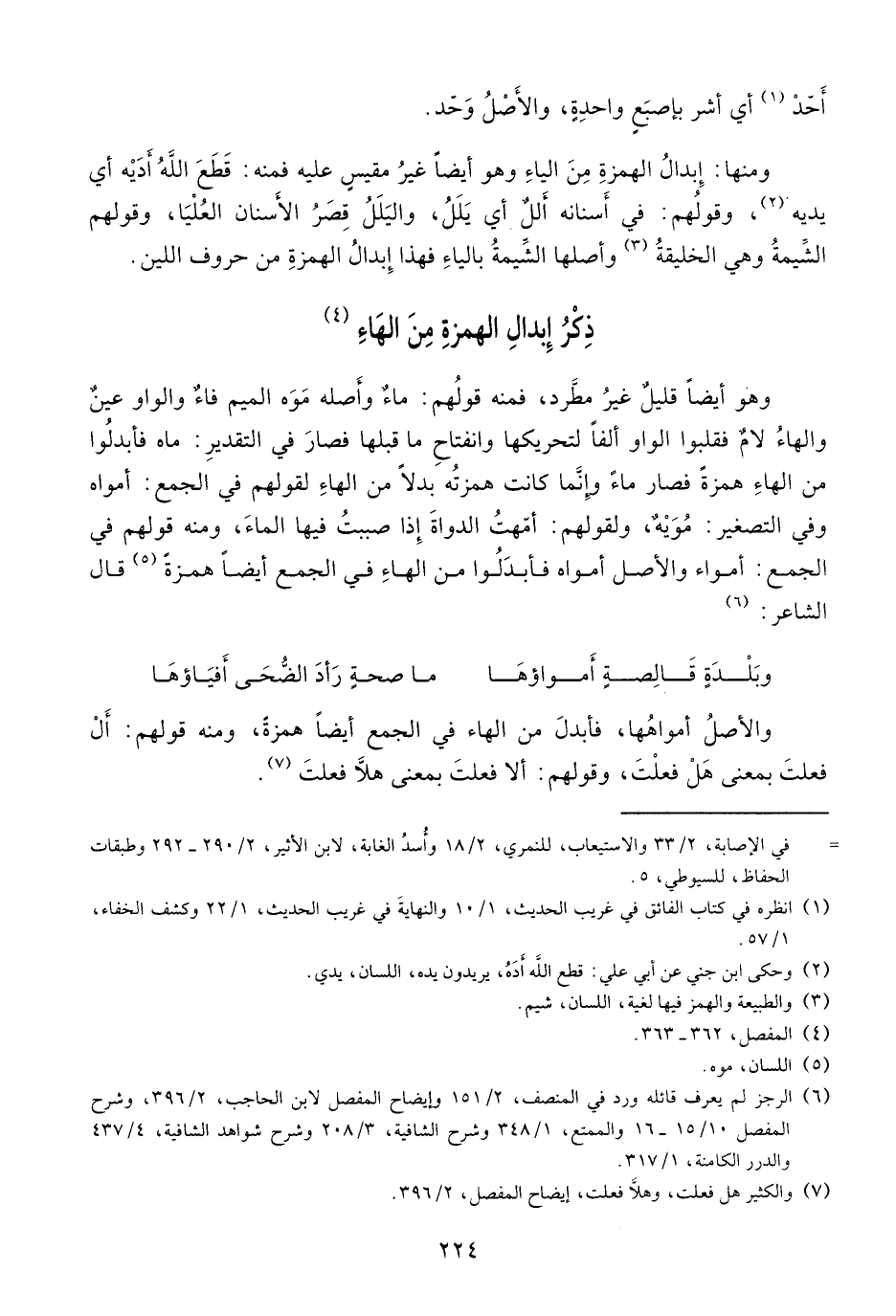 والأصل أمواهها، فأبدل من الهاء في الجمع أيضا همزة، ومنه قولهم: أل فعلت بمعنى هل فعلت، وقولهم: ألا فعلت بمعنى هلّا فعلت (¬7).