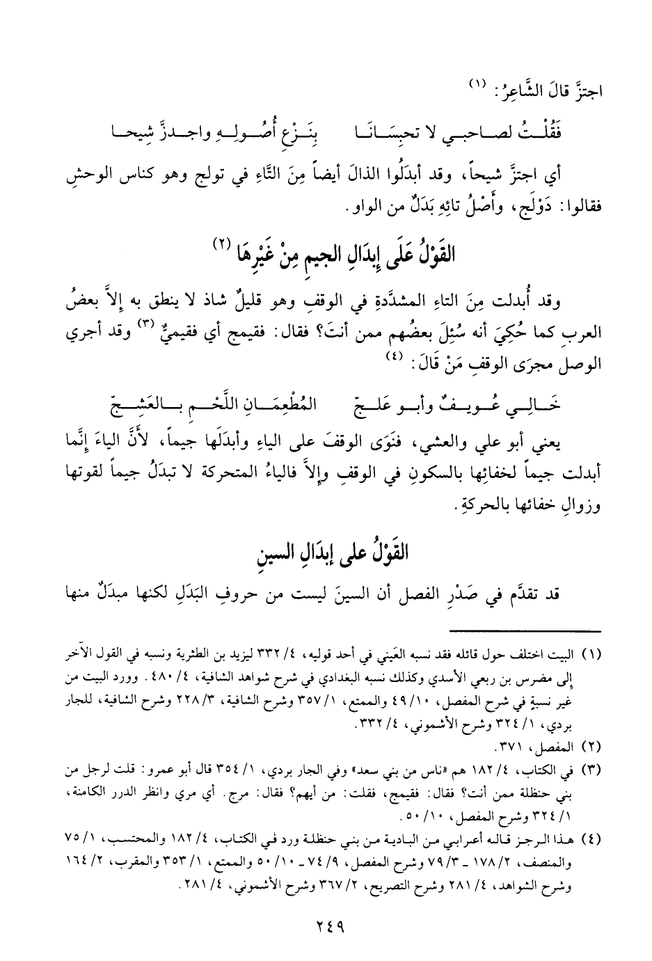 الشافية، 3/ 228 وشرح الشافية، للجار بردي، 1/ 324 وشرح الأشموني، 4/ 332.