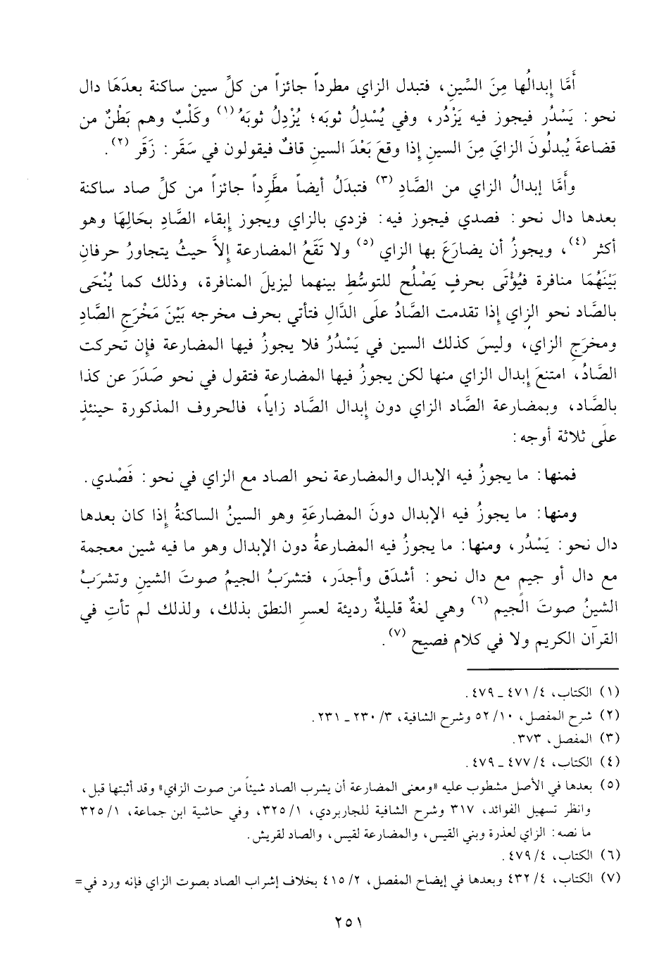 (¬7) الكتاب، 4/ 432 وبعدها في إيضاح المفصل، 2/ 415 بخلاف إشراب الصاد بصوت الزاي فإنه ورد في -