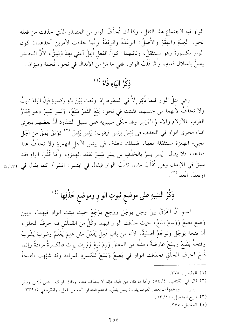 الواو فيه لاجتماع هذا الثقل، وكذلك تحذف الواو من المصدر الذي حذفت من فعله نحو: العدة والمقة والأصل: الوعدة والومقة وإنّما حذفت لأمرين أحدهما: كون الواو مكسورة وهو مستثقل، وثانيهما: كون الفعل أعلّ أعني يعد ويمق، لأنّ المصدر يعتلّ باعتلال فعله، وأمّا قلب الواو، ففي ما مرّ من الإبدال في نحو: تخمة وميزان.