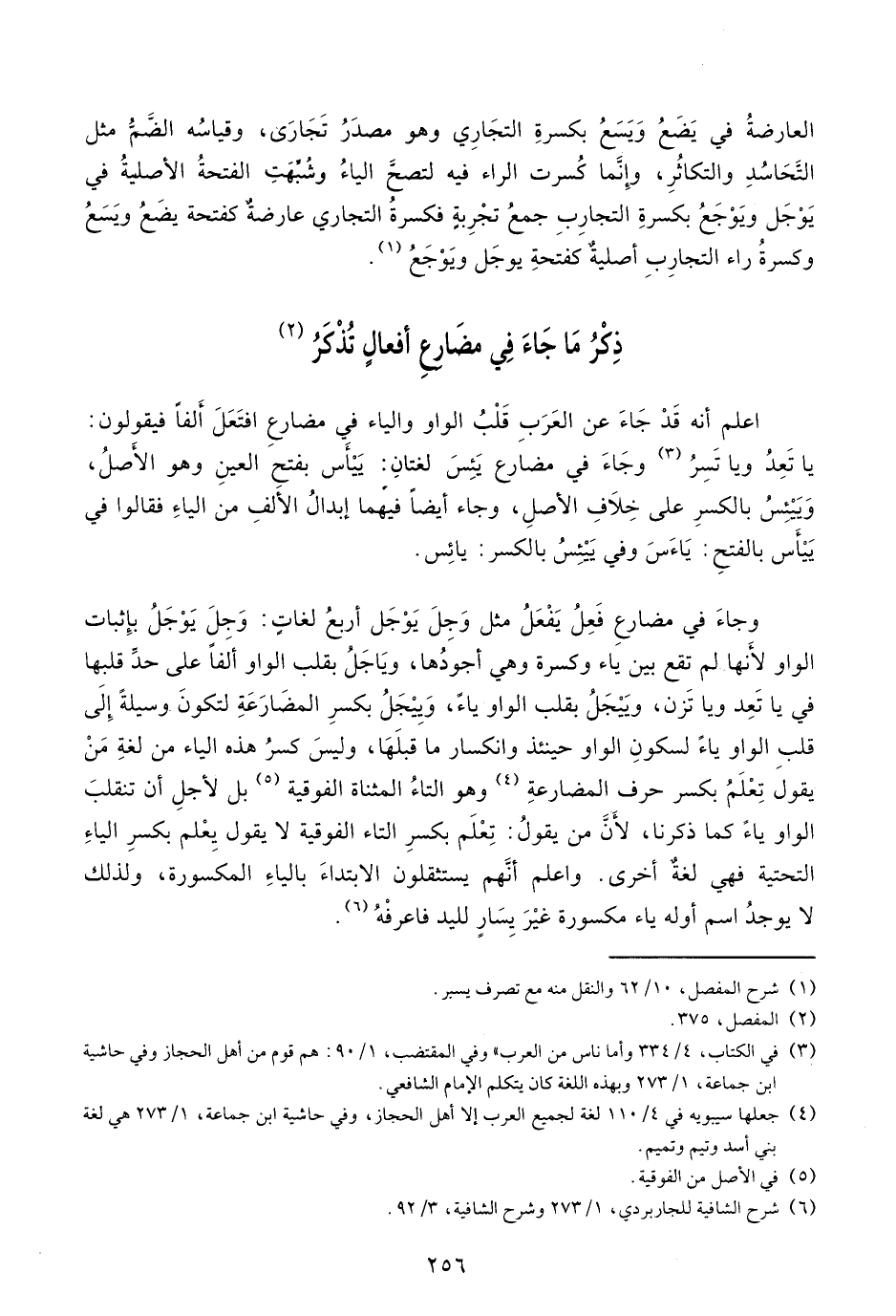 (¬6) شرح الشافية للجاربردي، 1/ 273 وشرح الشافية، 3/ 92.