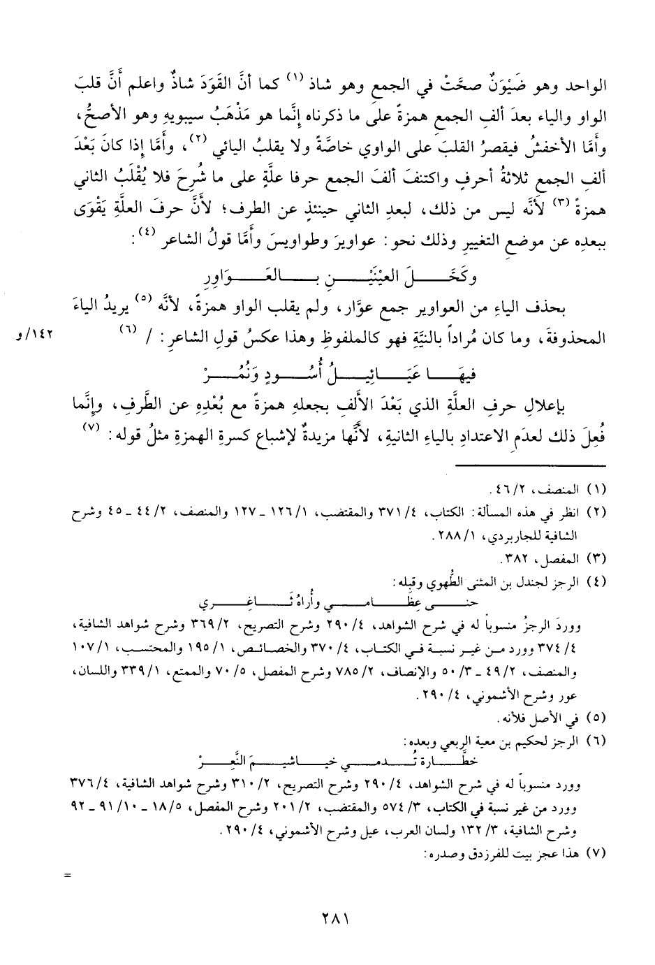 (¬2) انظر في هذه المسألة: الكتاب، 4/ 371 والمقتضب، 1/ 126 - 127 والمنصف، 2/ 44 - 45 وشرح الشافية للجاربردي، 1/ 288.