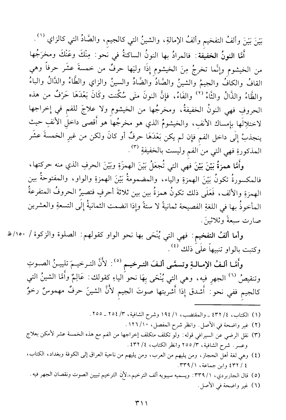 (¬5) قال الجاربردي، 1/ 339: ويسميه سيبويه ألف الترخيم، لأن الترخيم تبيين الصوت ونقصان الجهر فيه.