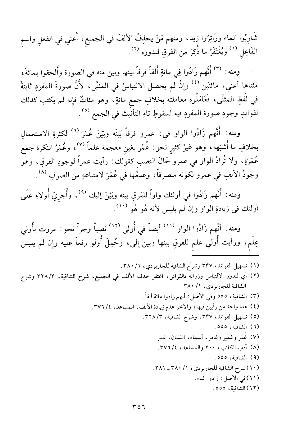 (¬1) تسهيل الفوائد، 337 وشرح الشافية للجاربردي، 1/ 380.