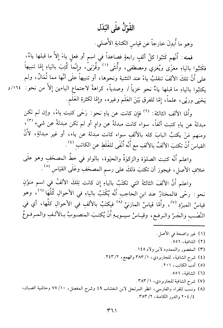 (¬4) شرح الشافية، للجاربردي، 1/ 383 والهمع، 2/ 243.