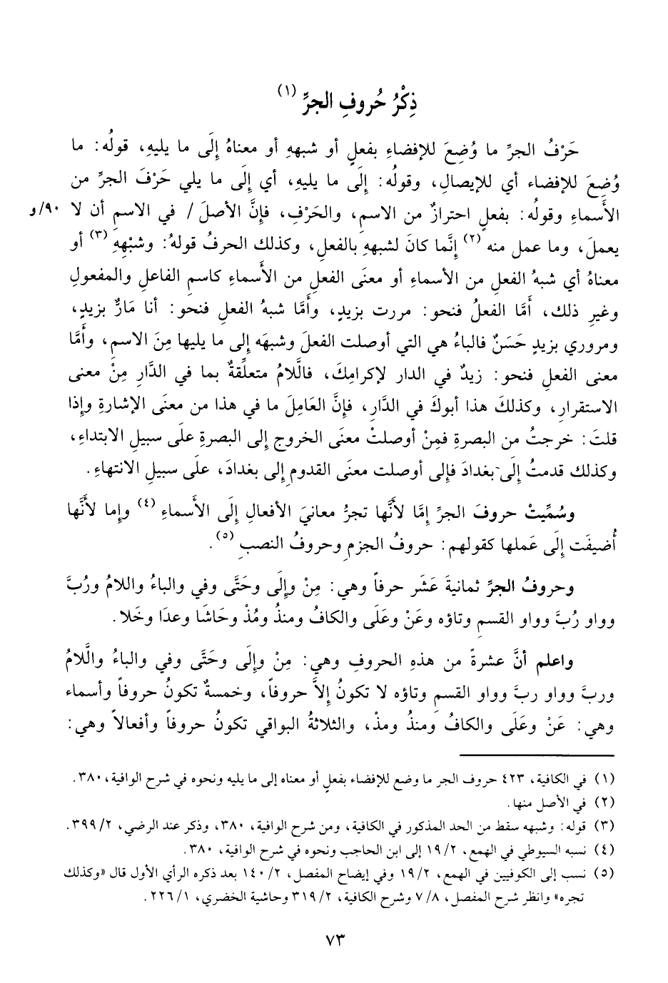 (¬1) في الكافية، 423 حروف الجر ما وضع للإفضاء بفعل أو معناه إلى ما يليه ونحوه في شرح الوافية، 380.
