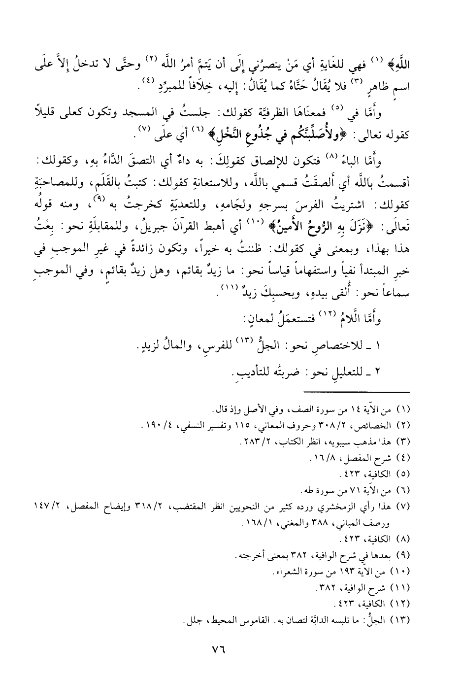 (¬2) الخصائص، 2/ 308 وحروف المعاني، 115 وتفسير النسفي، 4/ 190.