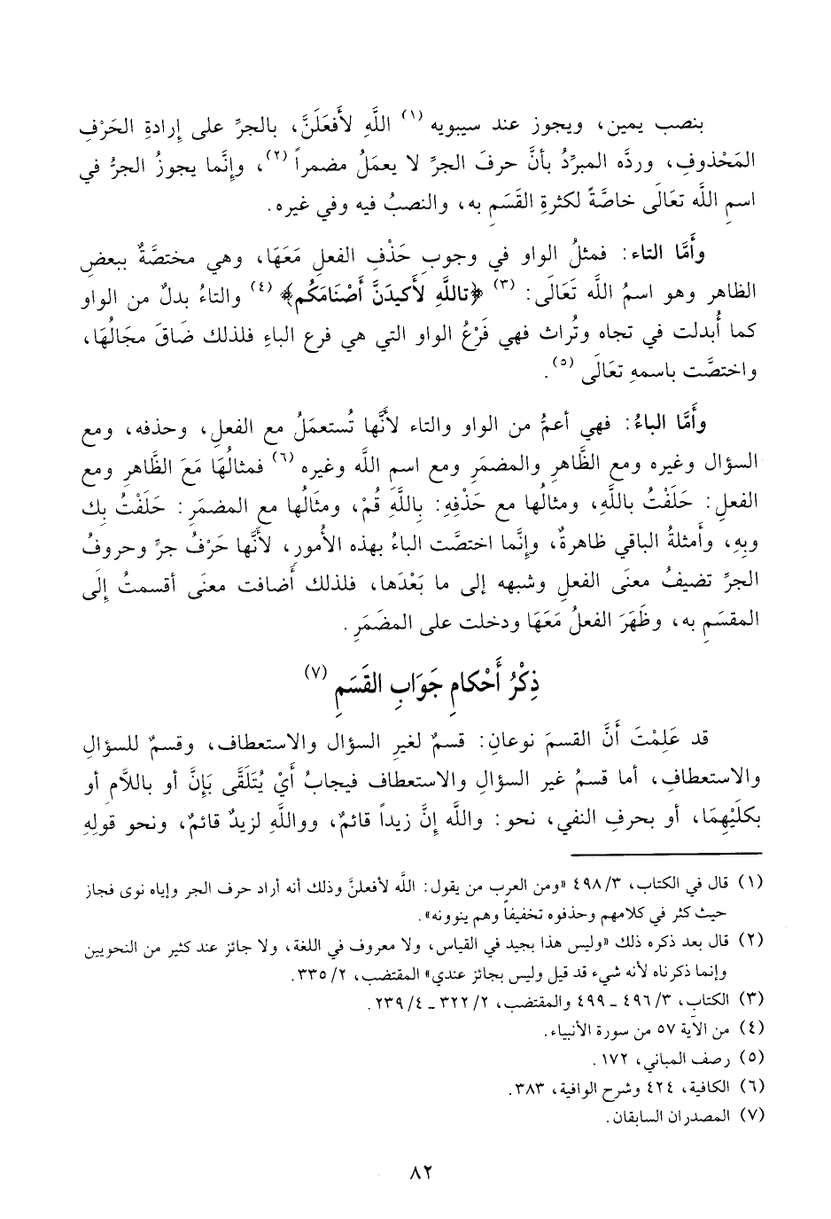 (¬1) قال في الكتاب، 3/ 498 «ومن العرب من يقول: الله لأفعلنّ وذلك أنه أراد حرف الجر وإياه نوى فجاز حيث كثر في كلامهم وحذفوه تخفيفا وهم ينوونه».