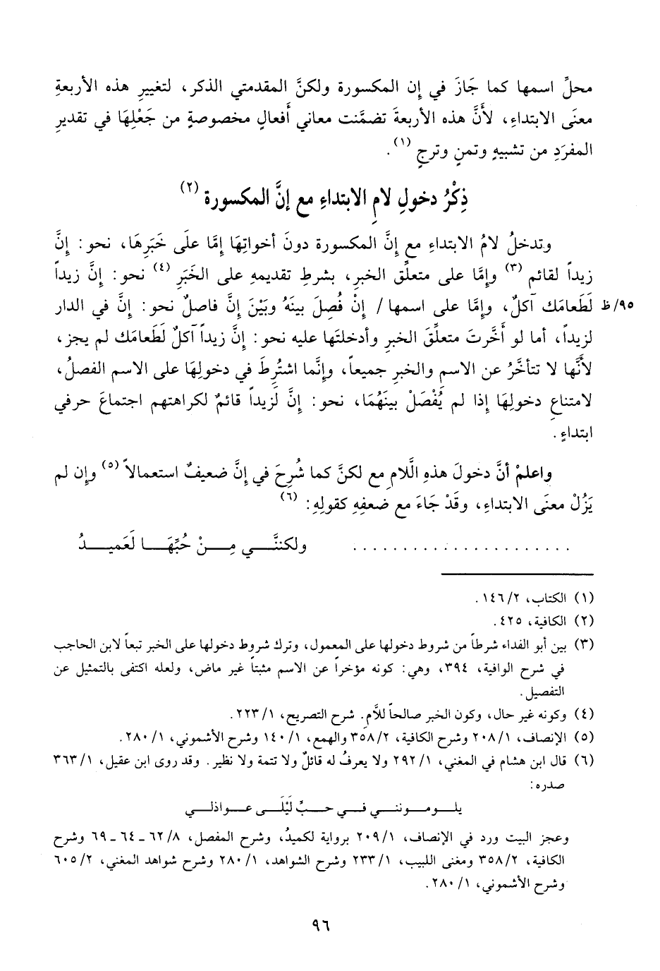 (¬5) الإنصاف، 1/ 208 وشرح الكافية، 2/ 358 والهمع، 1/ 140 وشرح الأشموني، 1/ 280.
