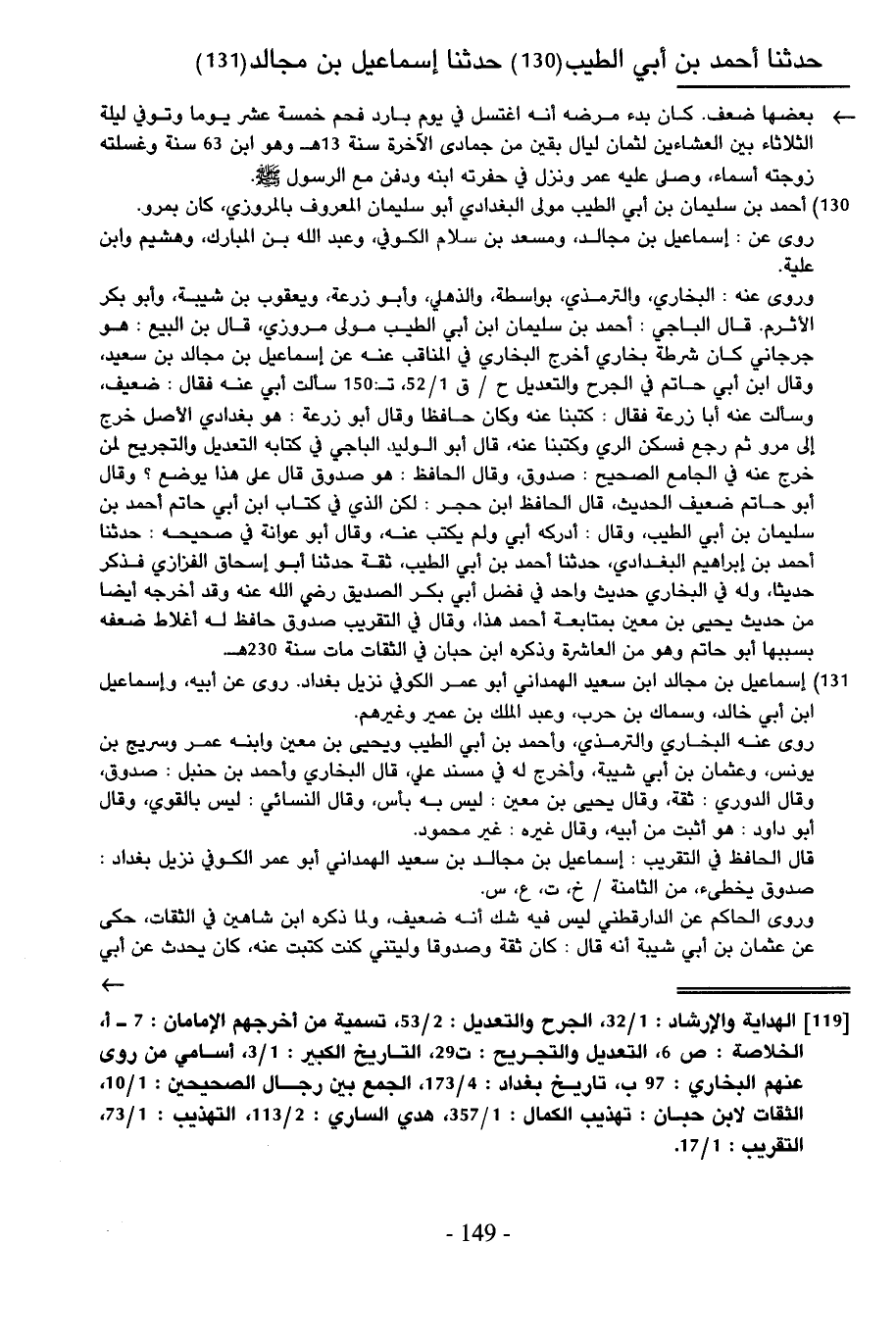 حَدثنَا أَحْمد بن أبي الطّيب حَدثنَا إِسْمَاعِيل بن مجَالد