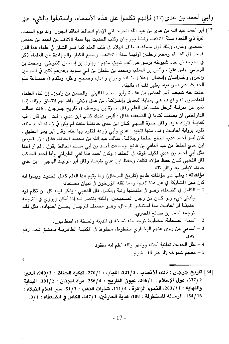 وَأبي أَحْمد بن عدي فَإِنَّهُم تكلمُوا على هَذِه الْأَسْمَاء وَاسْتَدَلُّوا بالشَّيْء على
