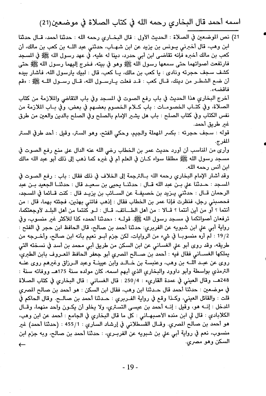 اسْمه أَحْمد قَالَ البُخَارِيّ رَحمَه الله فِي كتاب الصَّلَاة فِي موضِعين