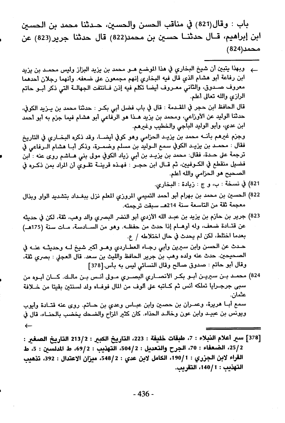 بَاب وَقَالَ فِي مَنَاقِب الْحسن وَالْحُسَيْن حَدثنَا مُحَمَّد بن الْحُسَيْن ابْن إِبْرَاهِيم قَالَ حَدثنَا حُسَيْن بن مُحَمَّد قَالَ حَدثنَا جرير عَن مُحَمَّد