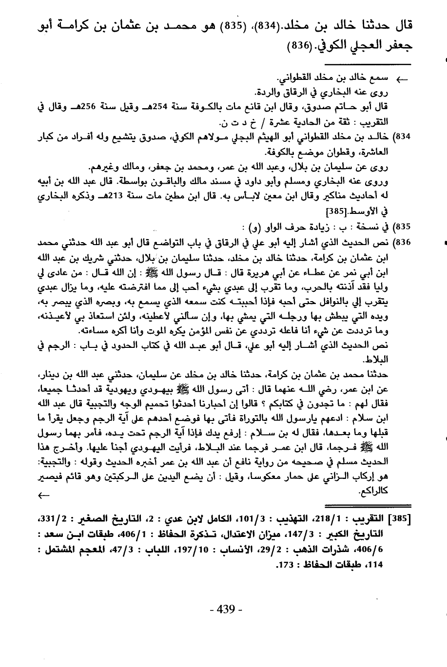 قَالَ حَدثنَا خَالِد بن مخلد هُوَ مُحَمَّد بن عُثْمَان بن كَرَامَة أَبُو جَعْفَر الْعجلِيّ الْكُوفِي