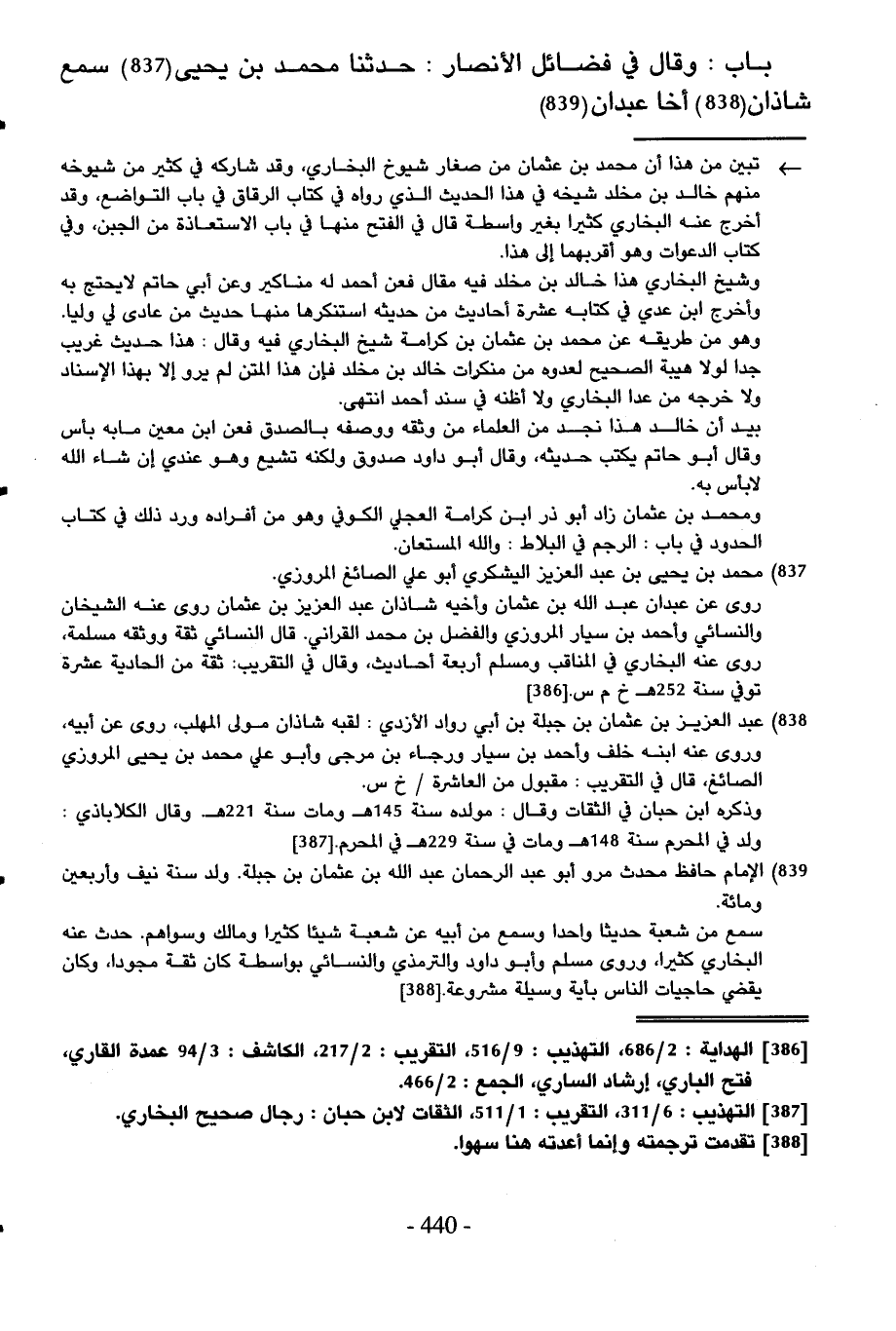 بَاب وَقَالَ فِي فَضَائِل الْأَنْصَار حَدثنَا مُحَمَّد بن يحيى سمع شَاذان أَخا عَبْدَانِ