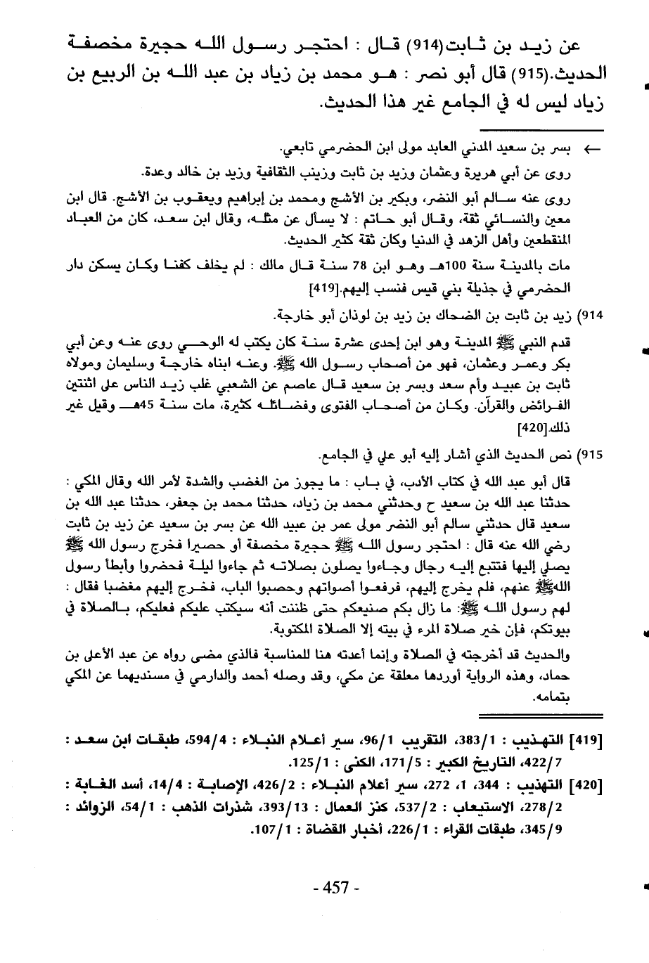 عَن زيد بن ثَابت قَالَ احتجر رَسُول الله حجيرة مخصفة الحَدِيث قَالَ أَبُو نصر هُوَ مُحَمَّد بن زِيَاد بن عبد الله بن الرّبيع بن زِيَاد لَيْسَ لَهُ فِي الْجَامِع غير هَذَا الحَدِيث
