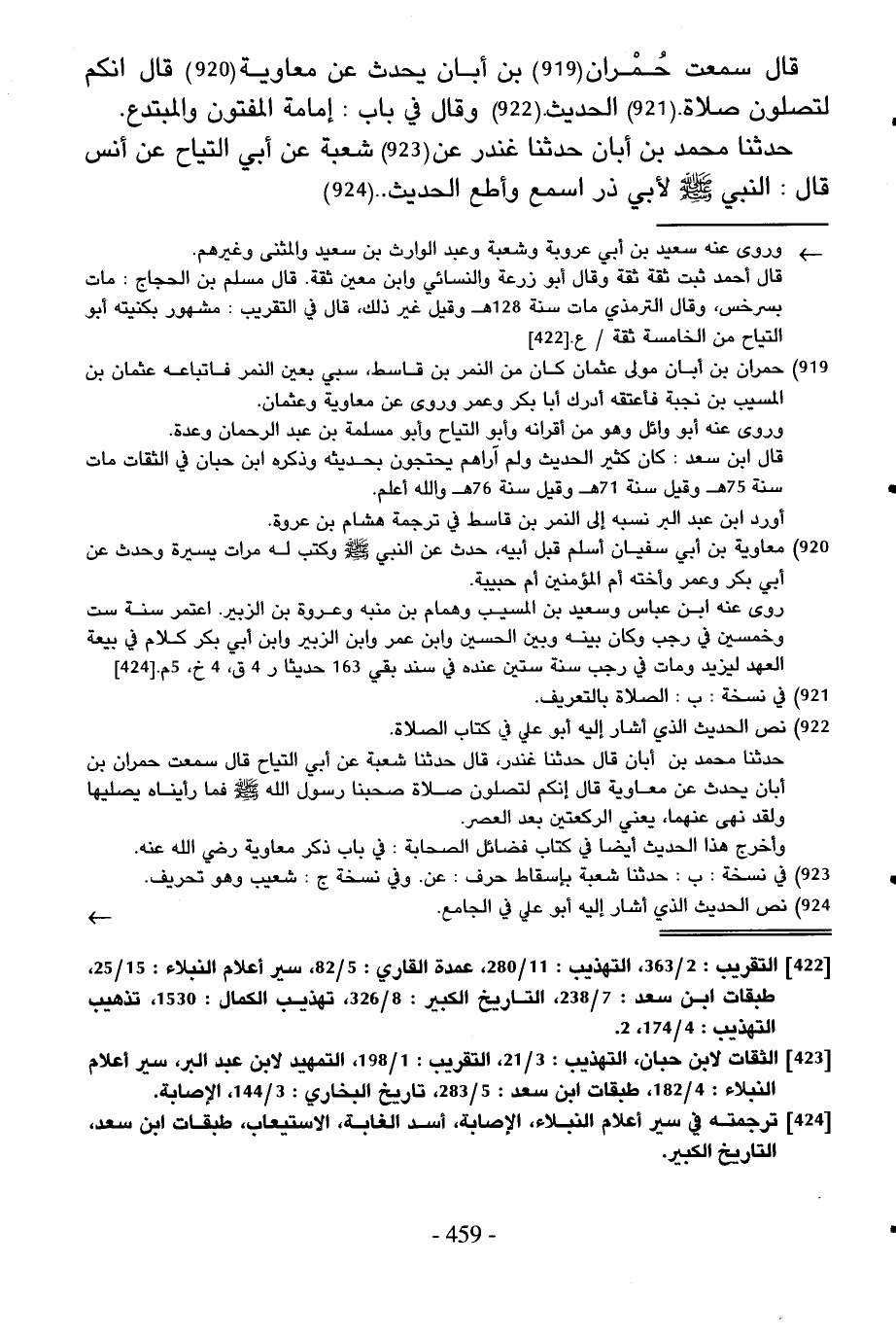 قَالَ سَمِعت حم ران بن أبان يحدث عَن مُعَاوِيَة قَالَ انكم لتصلون صَلَاة الحَدِيث وَقَالَ فِي بَاب إِمَامَة الْمفْتُون والمبتدع