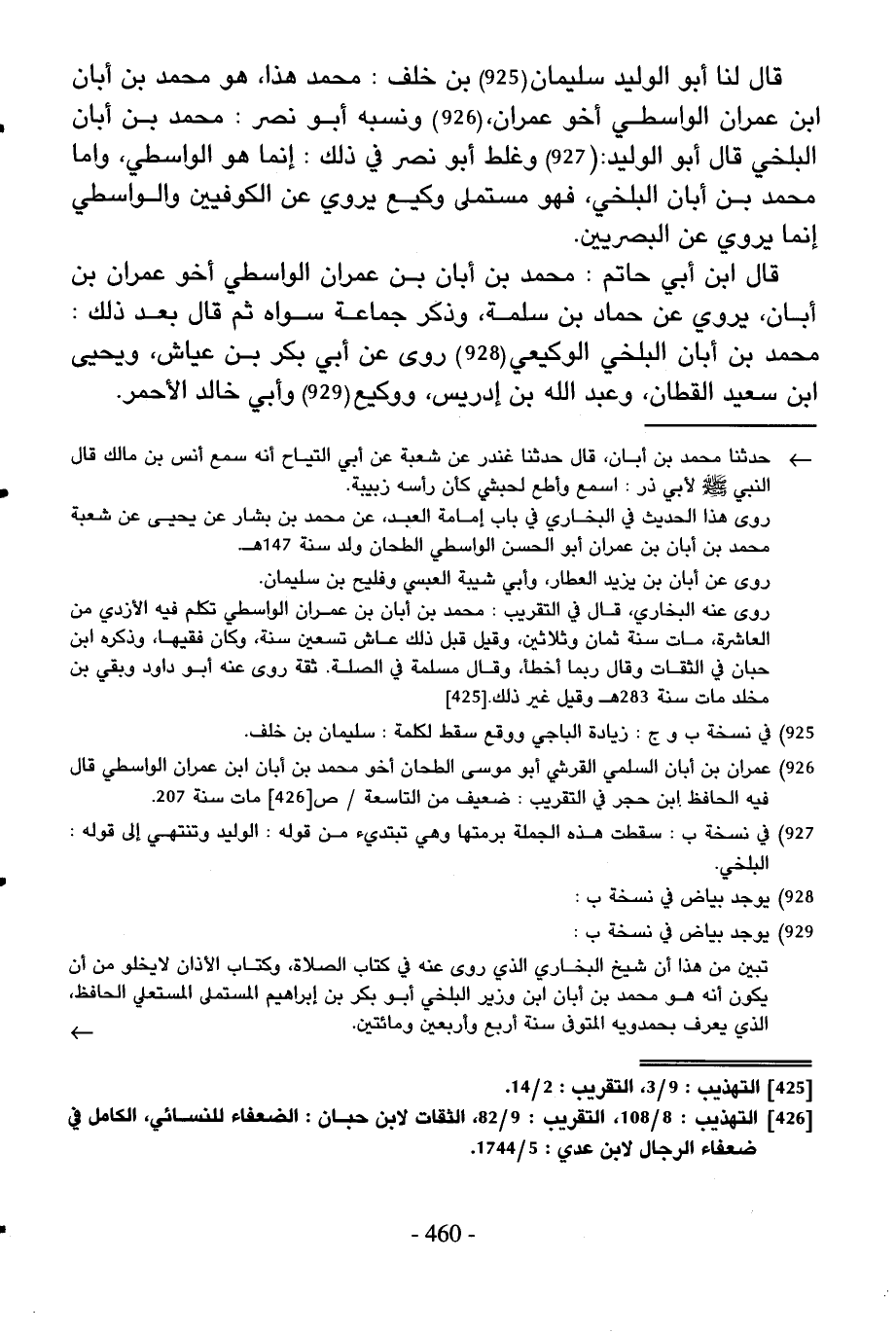 قَالَ لنا أَبُو الْوَلِيد سُلَيْمَان بن خلف مُحَمَّد هَذَا هُوَ مُحَمَّد بن أبان ابْن عمرَان الوَاسِطِيّ أَخُو عمرَان وَنسبه أَبُو نصر مُحَمَّد بن أبان الْبَلْخِي قَالَ أَبُو الْوَلِيد وَغلط أَبُو نصر فِي ذَلِك إِنَّمَا هُوَ الوَاسِطِيّ واما مُحَمَّد بن ابان الْبَلْخِي فَهُوَ مستملى وَكِيع يروي عَن الْكُوفِيّين والواسطي إِنَّمَا يروي عَن الْبَصرِيين