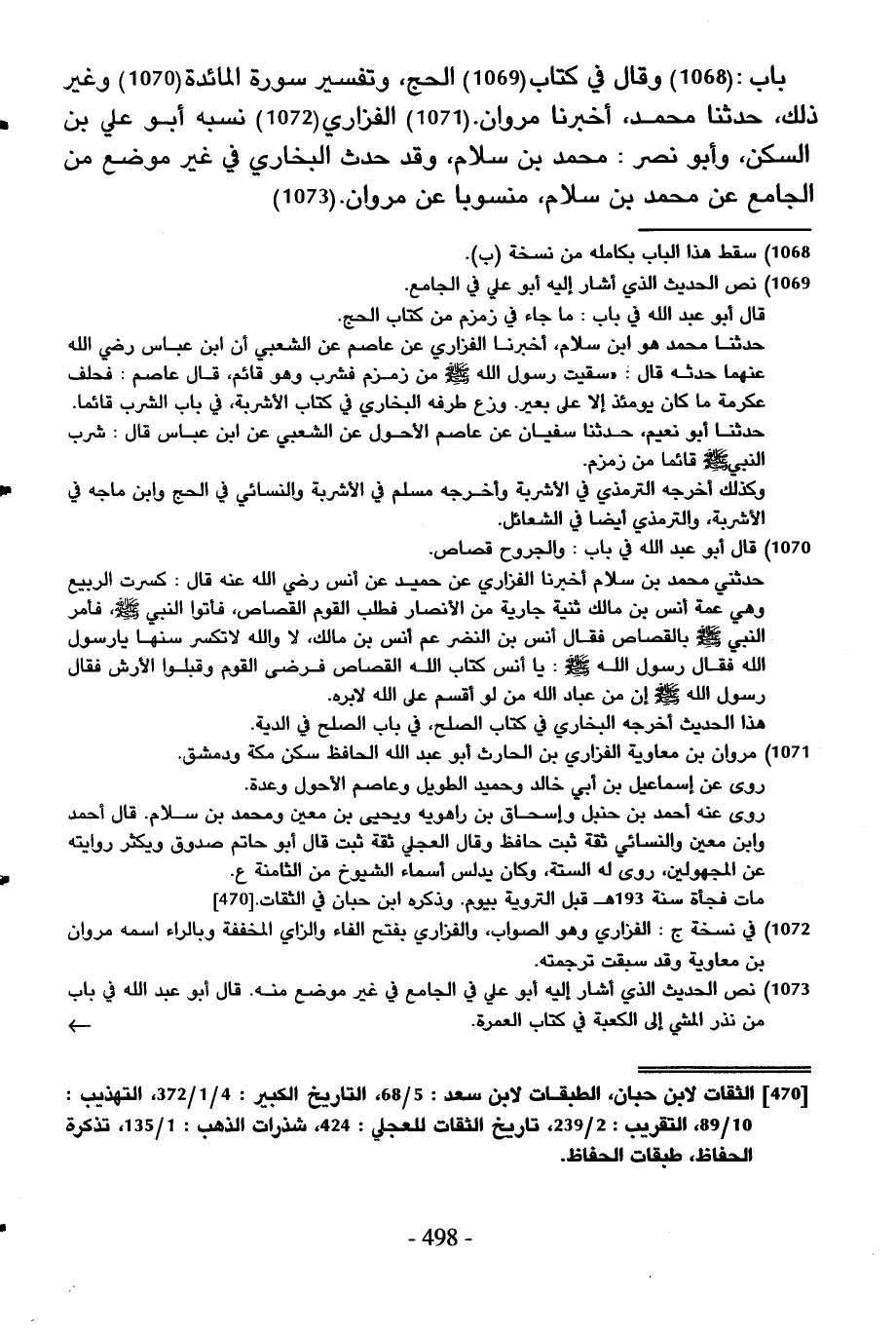 بَاب وَقَالَ فِي كتاب الْحَج وَتَفْسِير سُورَة الْمَائِدَة وَغير ذَلِك حَدثنَا مُحَمَّد أخبرنَا مَرْوَان الْفَزارِيّ نسبه أَبُو عَليّ بن السكن وَأَبُو نصر مُحَمَّد بن سَلام وَقد حدث البُخَارِيّ فِي غير مَوضِع من الْجَامِع عَن مُحَمَّد بن سَلام مَنْسُوبا عَن مَرْوَان