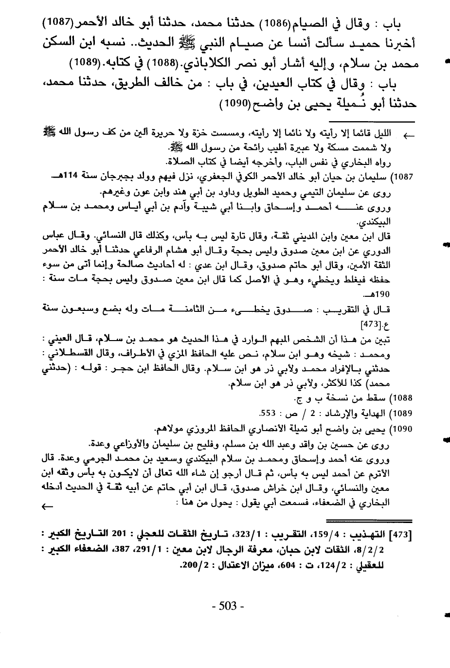 بَاب وَقَالَ فِي الصّيام حَدثنَا مُحَمَّد حَدثنَا أَبُو خَالِد الْأَحْمَر أخبرنَا حميد سَأَلت أنسا عَن صِيَام النَّبِي صلى الله عَلَيْهِ وَسلم الحَدِيث نسبه ابْن السكن مُحَمَّد بن سَلام وَإِلَيْهِ أَشَارَ أَبُو نصر الكلاباذي فِي كِتَابه