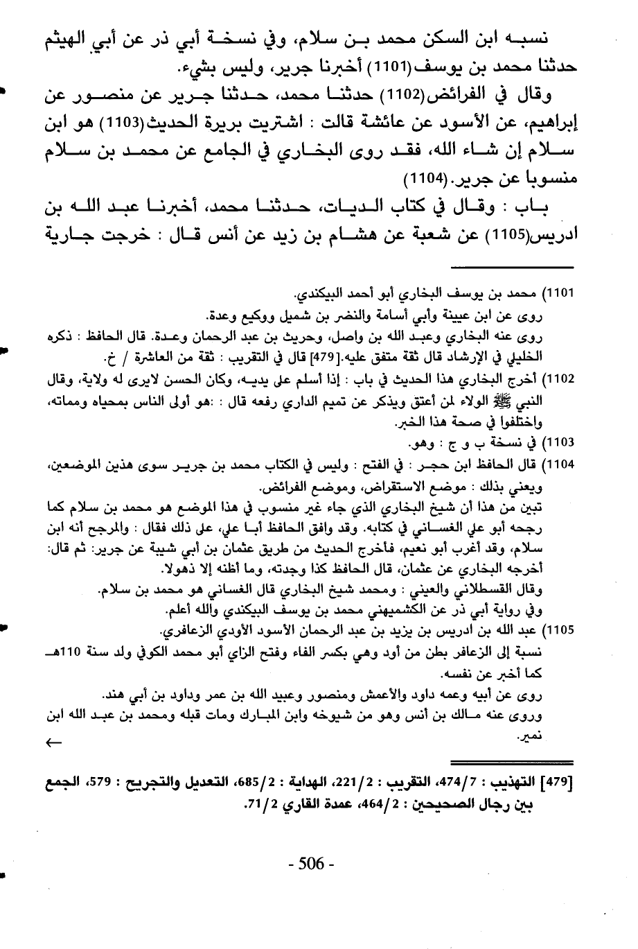 نسبه ابْن السكن مُحَمَّد بن سَلام وَفِي نُسْخَة أبي ذَر عَن أبي الْهَيْثَم حَدثنَا مُحَمَّد بن يُوسُف أخبرنَا جرير وَلَيْسَ بِشَيْء