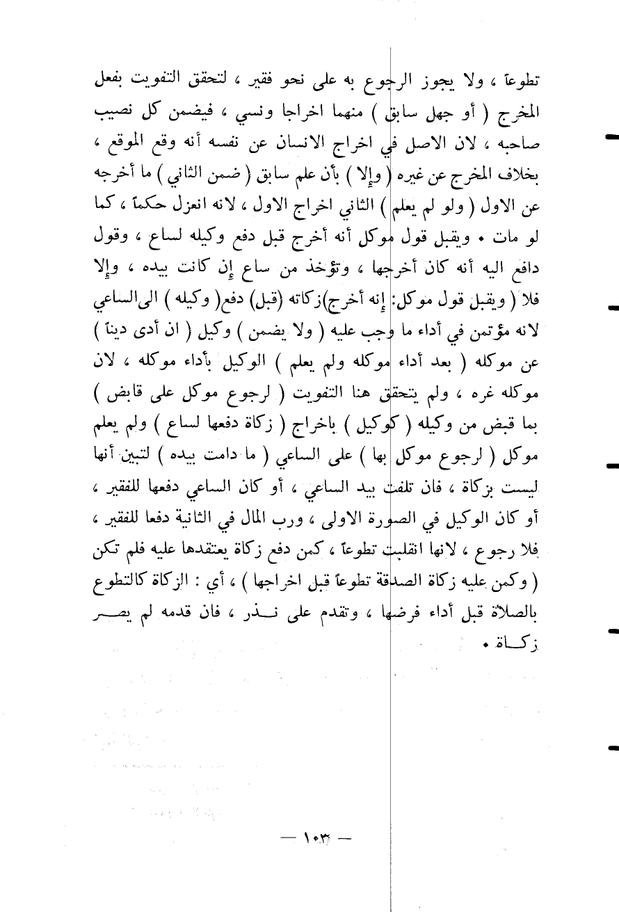 (وَإِلَّا) بِأَنْ عَلِمَ سَابِقٌ (ضَمِنَ الثَّانِي) مَا أَخْرَجَهُ عَنْ الْأَوَّلِ (وَلَوْ لَمْ يَعْلَمْ) الثَّانِي إخْرَاجَ الْأَوَّلِ، لِأَنَّهُ انْعَزَلَ حُكْمًا، كَمَا لَوْ مَاتَ. وَيُقْبَلُ قَوْلُ مُوَكِّلٍ " إنَّهُ أَخْرَجَ قَبْلَ دَفْعِ وَكِيلِهِ لِسَاعٍ "، وَقَوْلُ دَافِعٍ إلَيْهِ " إنَّهُ كَانَ أَخْرَجَهَا، وَتُؤْخَذُ مِنْ سَاعٍ إنْ كَانَتْ بِيَدِهِ، وَإِلَّا فَلَا (وَيُقْبَلُ قَوْلُ مُوَكِّلٍ: إنَّهُ أَخْرَجَ) زَكَاتَهُ (قَبْلَ) دَفْعِ (وَكِيلِهِ) إلَى السَّاعِي لِأَنَّهُ مُؤْتَمَنٌ فِي أَدَاءِ مَا وَجَبَ عَلَيْهِ (وَلَا يَضْمَنُ) وَكِيلٌ (إنْ أَدَّى دَيْنًا) عَنْ مُوَكِّلِهِ (بَعْدَ أَدَاءِ مُوَكِّلِهِ وَلَمْ يَعْلَمْ) الْوَكِيلُ بِأَدَاءِ مُوَكِّلِهِ، لِأَنَّ مُوَكِّلَهُ غَرَّهُ، وَلَمْ يَتَحَقَّقْ هُنَا التَّفْوِيتُ (لِرُجُوعِ مُوَكِّلٍ عَلَى قَابِضٍ) بِمَا قَبَضَ مِنْ وَكِيلِهِ (كَوَكِيلٍ) بِإِخْرَاجِ (زَكَاةٍ دَفَعَهَا لَسَاعٍ) وَلَمْ يَعْلَمْ مُوَكَّلٌ (لِرُجُوعِ مُوَكِّلٍ بِهَا) عَلَى السَّاعِي (مَا دَامَتْ بِيَدِهِ) لِتَبَيُّنِ أَنَّهَا لَيْسَتْ بِزَكَاةٍ، فَإِنْ تَلِفَتْ بِيَدِ السَّاعِي، أَوْ كَانَ السَّاعِي دَفَعَهَا لِلْفَقِيرِ، أَوْ كَانَ الْوَكِيلُ فِي الصُّورَةِ الْأُولَى، وَرَبُّ الْمَالِ فِي الثَّانِيَةِ دَفَعَا لِلْفَقِيرِ، فَلَا رُجُوعَ، لِأَنَّهَا انْقَلَبَتْ تَطَوُّعًا، كَمَنْ دَفَعَ زَكَاةً يَعْتَقِدُهَا عَلَيْهِ فَلَمْ تَكُنْ (وَكَمَنْ عَلَيْهِ زَكَاةُ الصَّدَقَةِ تَطَوُّعًا قَبْلَ إخْرَاجِهَا) ، أَيْ: الزَّكَاةِ كَالتَّطَوُّعِ بِالصَّلَاةِ قَبْلَ أَدَاءِ فَرْضِهَا، وَتُقَدَّمَ عَلَى نَذْرٍ، فَإِنْ قَدَّمَهُ لَمْ يَصِرْ زَكَاةً.