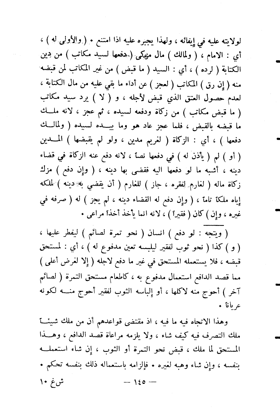 (وَ) كَذَا (نَحْوُ ثَوْبٍ لِفَقِيرِ لِيَلْبَسَهُ تَعَيَّنَ مَدْفُوعٌ لَهُ) ، أَيْ: لِمُسْتَحِقِّ قَبْضِهِ، فَلَا يَسْتَعْمِلُهُ الْمُسْتَحِقُّ فِي غَيْرِ مَا دَفَعَ لِأَجْلِهِ (إلَّا لِغَرَضٍ أَعْلَى) مِمَّا قَصَدَ الدَّافِعُ اسْتِعْمَالَ مَدْفُوعٍ بِهِ، كَاطِّعَامِ مُسْتَحِقِّ التَّمْرَةِ (لِصَائِمٍ آخَرَ) أَحْوَجَ مِنْهُ لِأَكْلِهَا، أَوْ إلْبَاسِهِ الثَّوْبَ لِفَقِيرٍ أَحْوَجَ مِنْهُ لِكَوْنِهِ عُرْيَانًا. وَهَذَا الِاتِّجَاهُ فِيهِ مَا فِيهِ، إذْ مُقْتَضَى قَوَاعِدِهِمْ أَنَّ مَنْ مَلَكَ شَيْئًا مَلَكَ التَّصَرُّفَ فِيهِ كَيْفَ شَاءَ، وَلَا يَلْزَمُهُ مُرَاعَاةُ قَصْدِ الدَّافِعِ، وَهَذَا الْمُسْتَحِقُّ لِمَا مَلَكَ، قَبَضَ نَحْوَ التَّمْرَةِ أَوْ الثَّوْبِ، إنْ شَاءَ اسْتَعْمَلَهُ بِنَفْسِهِ، وَإِنْ شَاءَ وَهَبَهُ لِغَيْرِهِ. فَإِلْزَامُهُ بِاسْتِعْمَالِهِ ذَلِكَ بِنَفْسِهِ تَحَكُّمٌ.