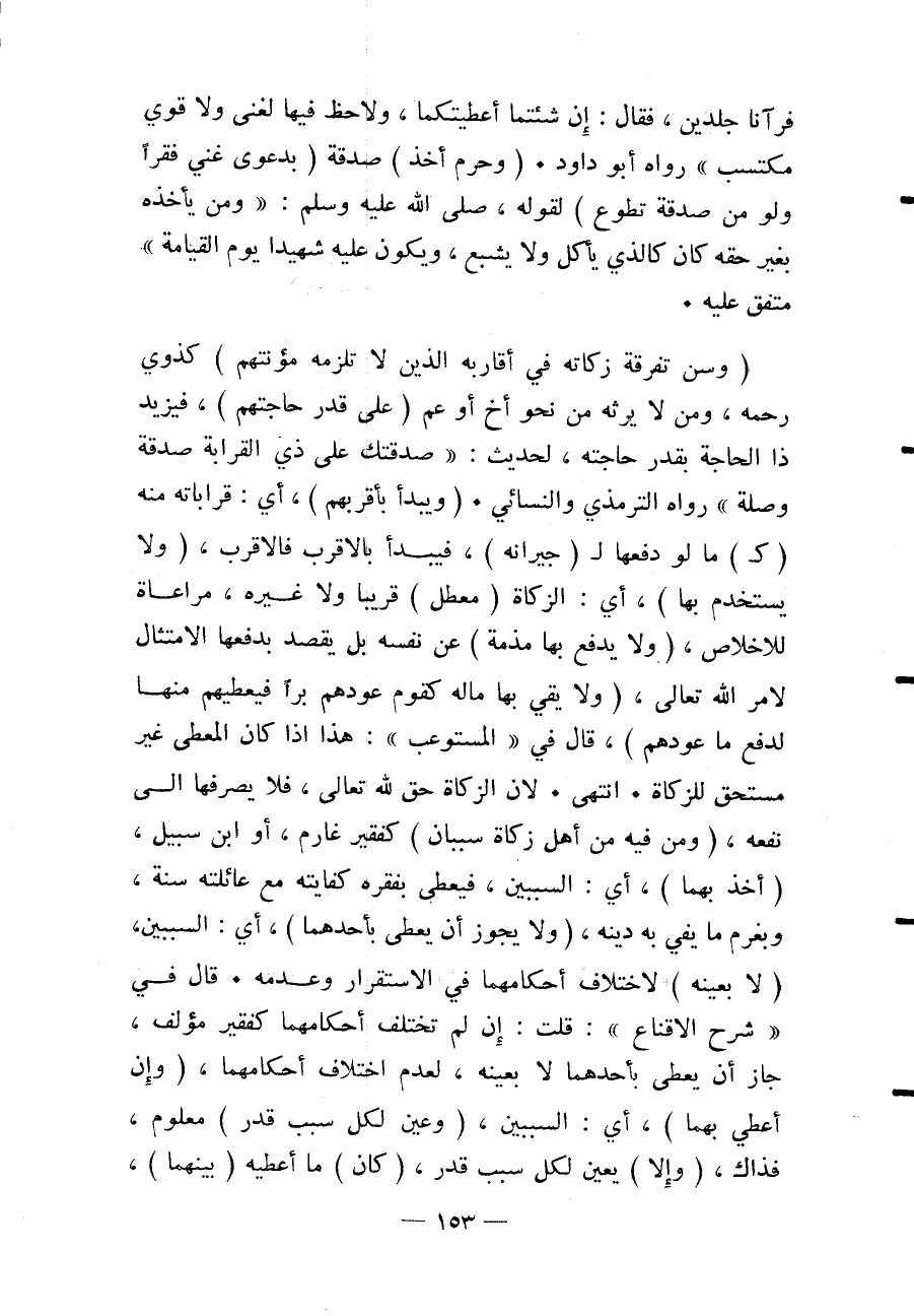 ،. (وَمَنْ فِيهِ مِنْ أَهْلِ زَكَاةٍ سَبَبَانِ) كَفَقِيرٍ غَارِمٍ، أَوْ ابْنِ سَبِيلٍ، (أَخَذَ بِهِمَا) ، أَيْ: السَّبَبَيْنِ، فَيُعْطَى بِفَقْرِهِ كِفَايَتَهُ مَعَ عَائِلَتِهِ سَنَةً، وَبِغُرْمٍ مَا يَفِي بِهِ دَيْنَهُ، (وَلَا يَجُوزُ أَنْ يُعْطَى بِأَحَدِهِمَا) ، أَيْ: السَّبَبَيْنِ، (لَا بِعَيْنِهِ) لِاخْتِلَافِ أَحْكَامِهِمَا فِي الِاسْتِقْرَارِ وَعَدَمِهِ. قَالَ فِي شَرْحِ الْإِقْنَاعِ ": قُلْتُ: إنْ لَمْ تَخْتَلِفْ أَحْكَامُهُمَا كَفَقِيرٍ مُؤَلَّفٍ، جَازَ أَنْ يُعْطَى بِأَحَدِهِمَا لَا بِعَيْنِهِ، لِعَدَمِ اخْتِلَافِ أَحْكَامِهِمَا.