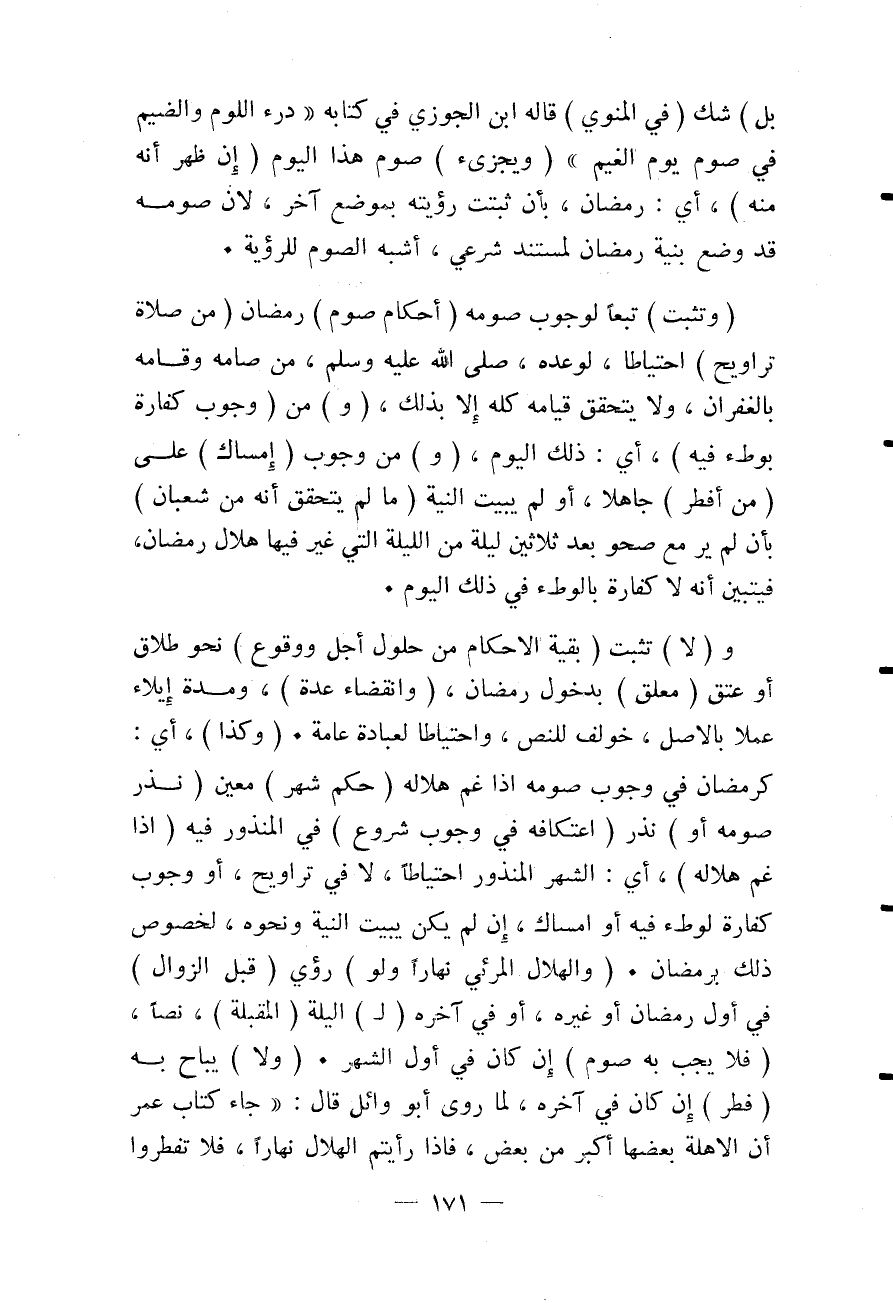 بَلْ) شَكٍّ (فِي الْمَنْوِيِّ) قَالَ ابْنُ الْجَوْزِيِّ فِي كِتَابِهِ " دَرْءِ اللَّوْمِ وَالضَّيْمِ فِي صَوْمِ يَوْمِ الْغَيْمِ ".