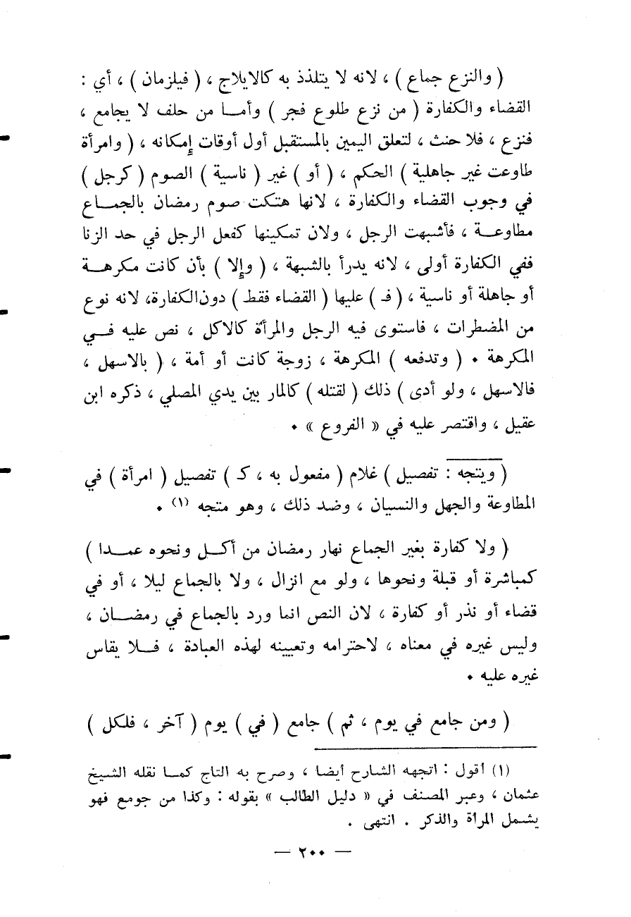 (وَالنَّزْعُ جِمَاعٌ) ؛ لِأَنَّهُ يَتَلَذَّذُ بِهِ كَالْإِيلَاجِ، (فَيَلْزَمَانِ) ، أَيْ: الْقَضَاءُ وَالْكَفَّارَةُ (مَنْ نَزَعَ طُلُوعَ فَجْرٍ) وَأَمَّا مَنْ حَلَفَ لَا يُجَامِعُ، فَنَزَعَ، فَلَا حِنْثَ؛ لِتَعَلُّقِ الْيَمِينِ بِالْمُسْتَقْبَلِ أَوَّلَ أَوْقَاتِ إمْكَانِهِ.