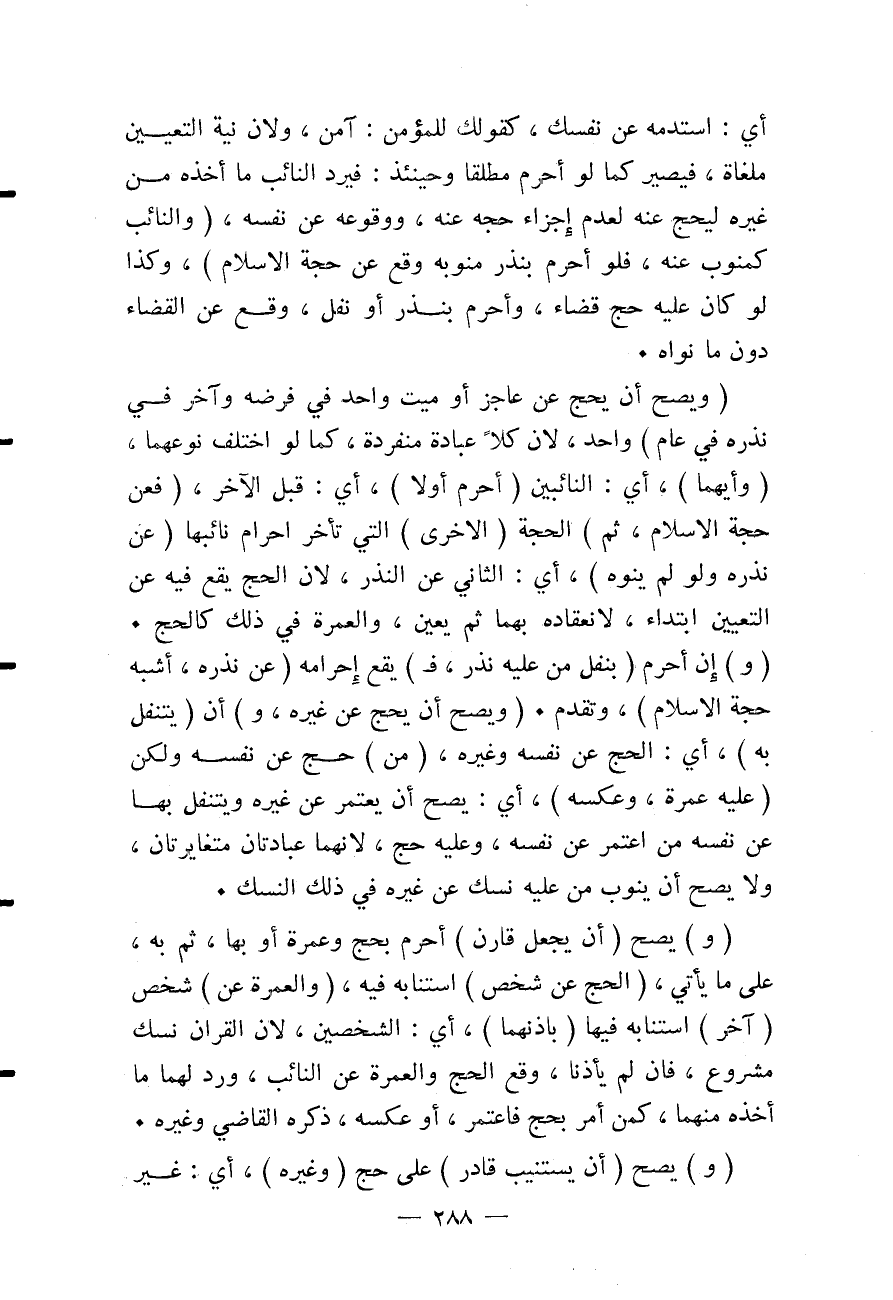 (وَيَصِحُّ أَنْ يَحُجَّ عَنْ غَيْرِهِ، وَ) أَنْ (يَتَنَفَّلَ بِهِ) ، أَيْ: الْحَجِّ عَنْ نَفْسِهِ وَغَيْرِهِ، (مَنْ) حَجَّ عَنْ نَفْسِهِ وَلَكِنْ (عَلَيْهِ عُمْرَةٌ، وَعَكْسُهُ) ، أَيْ: يَصِحُّ أَنْ يَعْتَمِرَ عَنْ غَيْرِهِ وَيَتَنَفَّلَ بِهَا عَنْ نَفْسِهِ مَنْ اعْتَمَرَ عَنْ نَفْسِهِ، وَعَلَيْهِ حَجٌّ، لِأَنَّهُمَا عِبَادَتَانِ مُتَغَايِرَتَانِ، وَلَا يَصِحُّ أَنْ يَنُوبَ مَنْ عَلَيْهِ نُسُكٌ عَنْ غَيْرِهِ فِي ذَلِكَ النُّسُكِ.